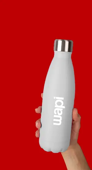 Garrafa em aço inoxidável reciclado, com design sustentável e durável. Ideal para o uso diário ou como brinde corporativo ecológico.