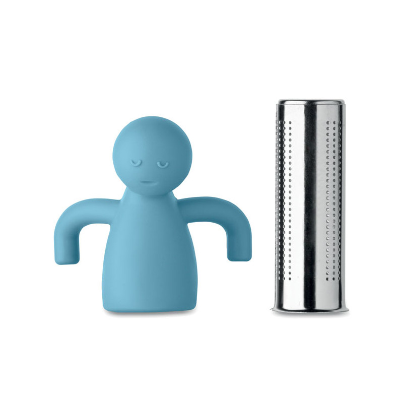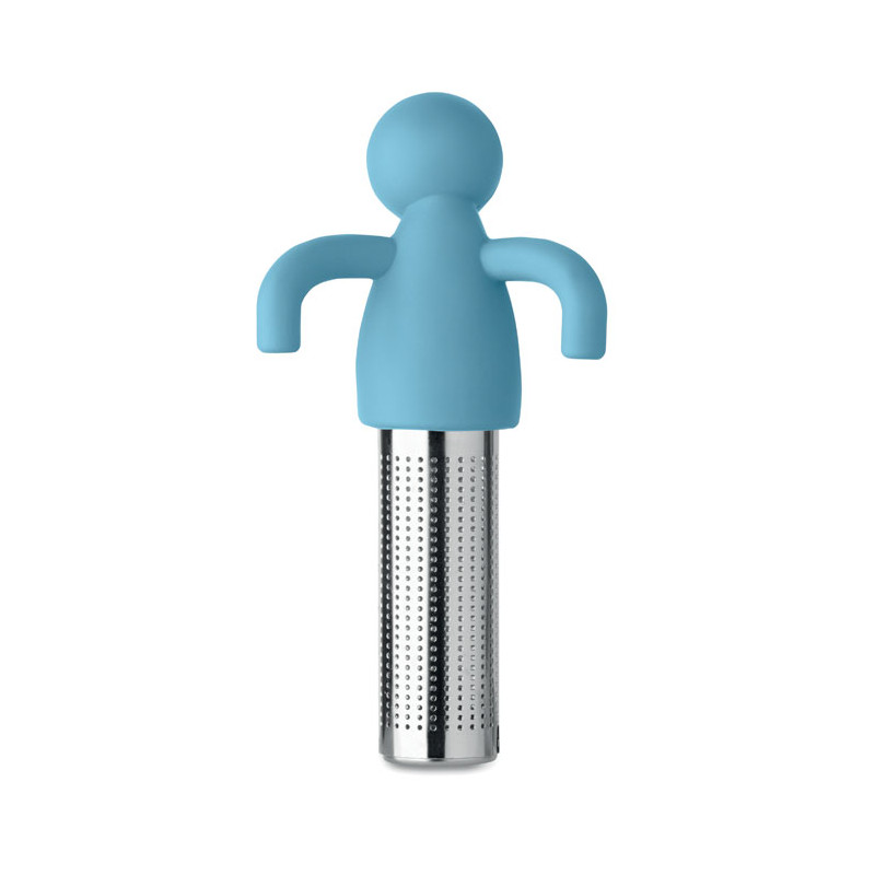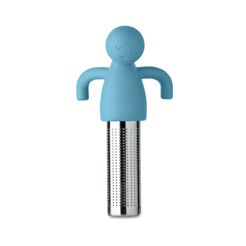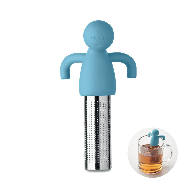 Divertido infusor de té para té a granel. Forma de hombrecito en silicona y filtro en acero inoxidable.