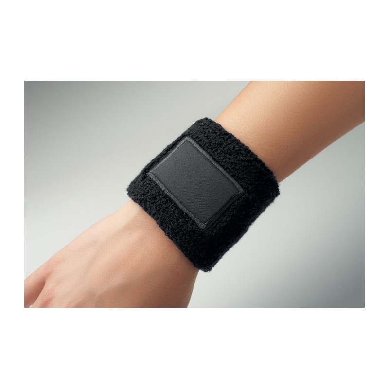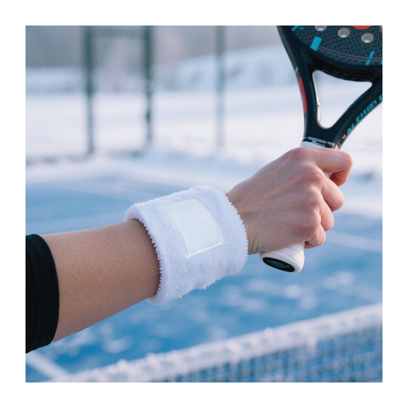 Muñequera de poli algodón (79% algodón/13% elástico/8% poliéster) con parche de algodón para la impresión.