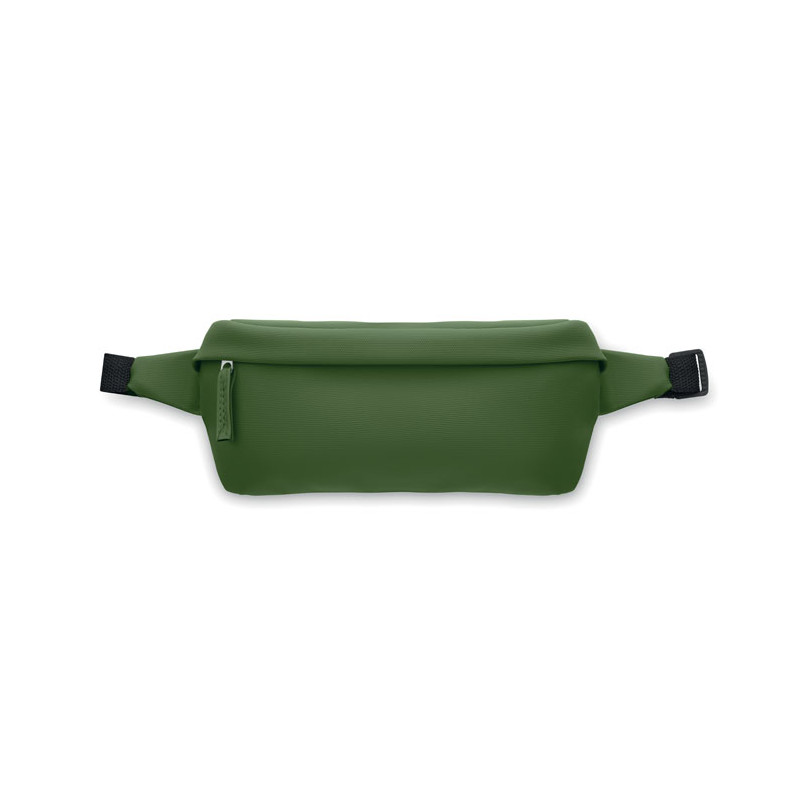 Riñonerade poliéster 600D RPET recubierto de PU, forro de poliéster 210D RPET y bolsillo frontal con cremallera.