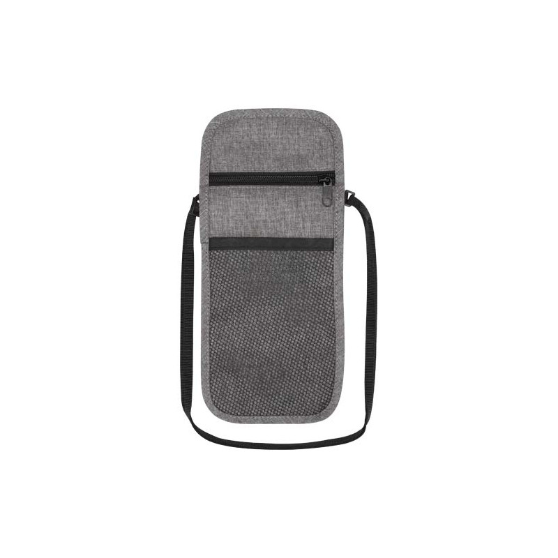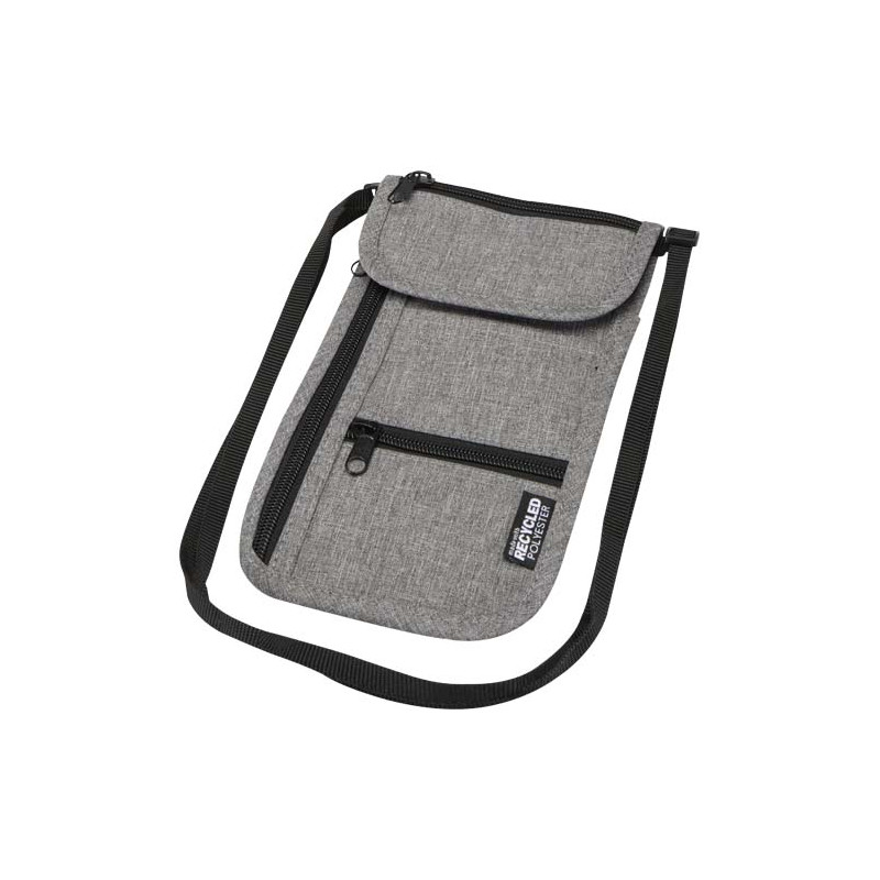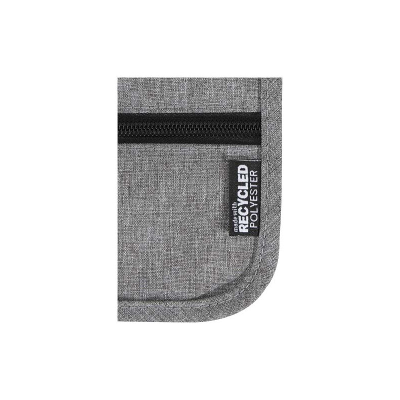 Bolsa de viaje inteligente fabricada en materiales reciclados GRS. Compacta y con múltiples bolsos para móvil, pasaporte y accesorios, es el regalo personalizado ideal para viajes y organización.