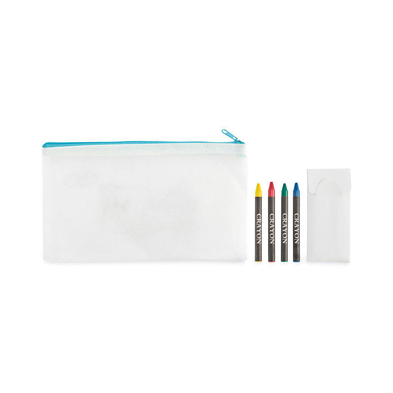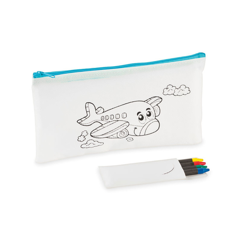 Estuche infantil non woven coloreable que incluye 4 lápices de colores.