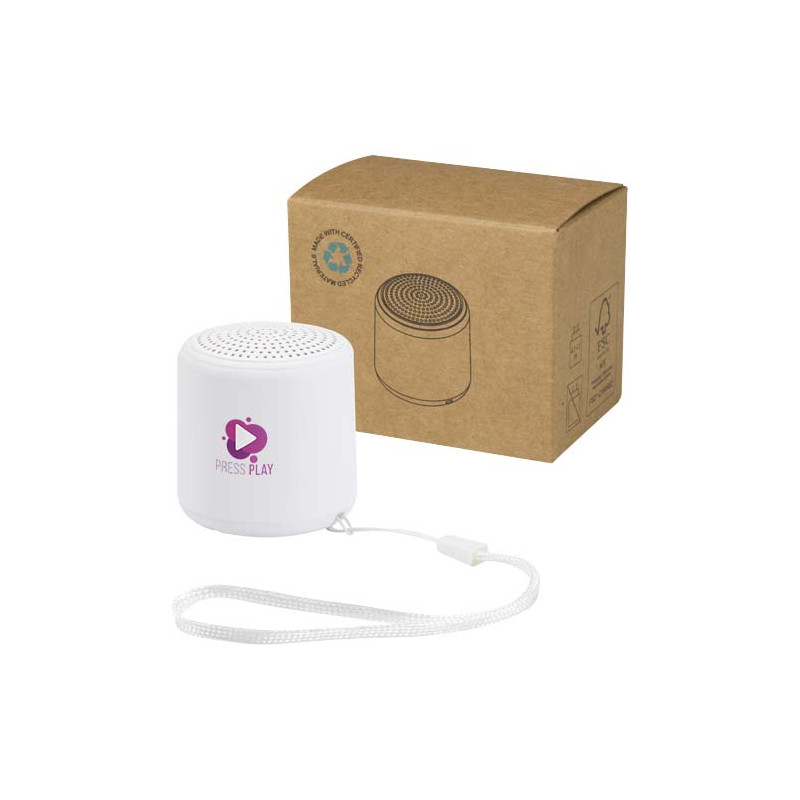 Lleva tu música a cualquier parte con el altavoz compacto "Velkis" Bluetooth® de 3 W. Fabricado con plástico reciclado, cuenta con una cómoda correa para la muñeca y un sencillo mando de un solo botón. Con una batería de 300 mAh y carga tipo-C, ofrece la solución de audio portátil perfecta. Incluye un cable de carga de tipo-A a tipo-C de 30 cm.