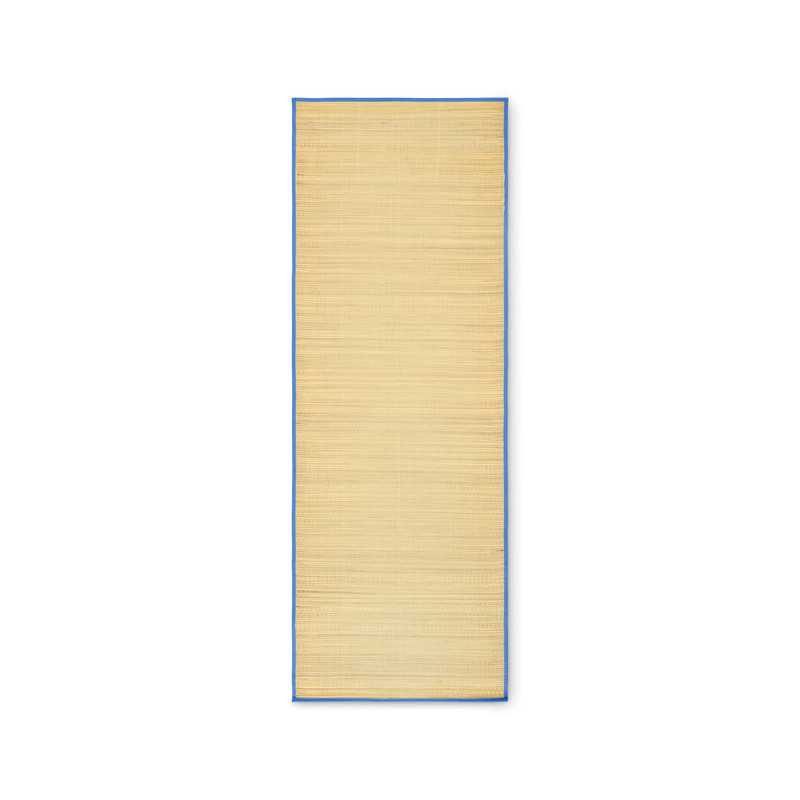 Esterilla de playa enrollable de paja natural con correa de transporte de poliéster.
