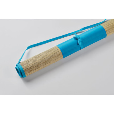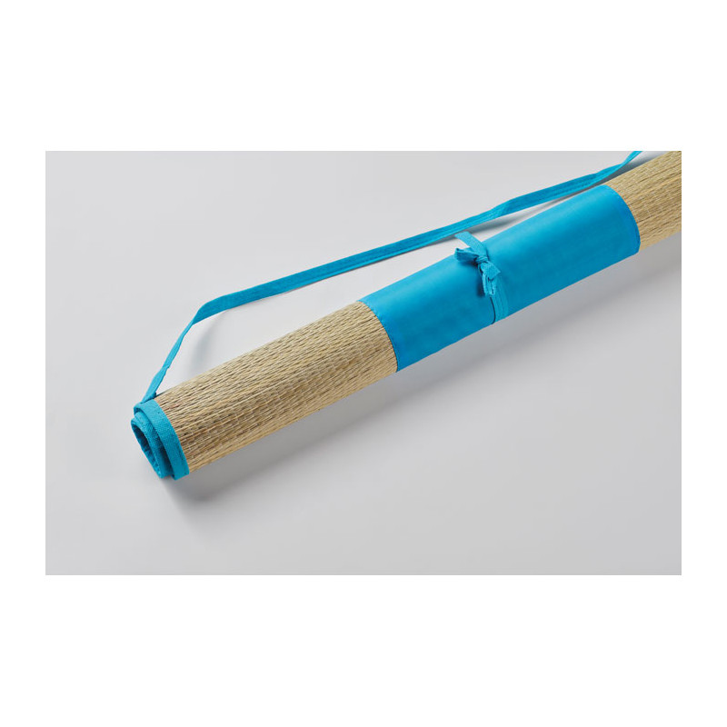 Esterilla de playa enrollable de paja natural con correa de transporte de poliéster.
