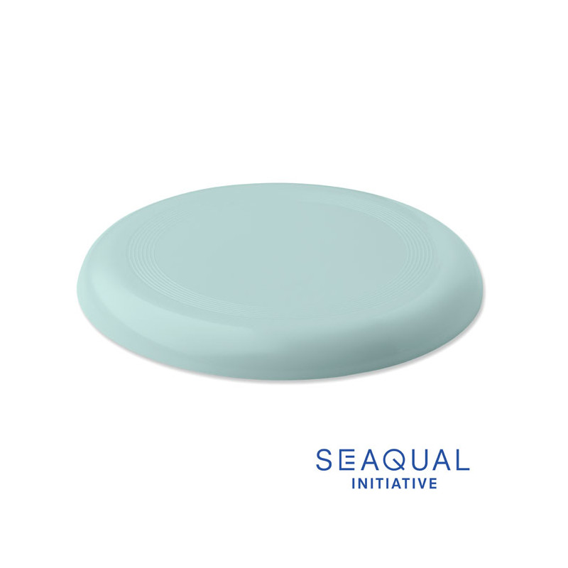 Disco volador frisbee fabricado con material PP oceánico SEAQUAL®. Diámetro 21 cm, grosor 1,2 mm. SEAQUAL INITIATIVE colabora en la limpieza de océanos en todo el mundo.