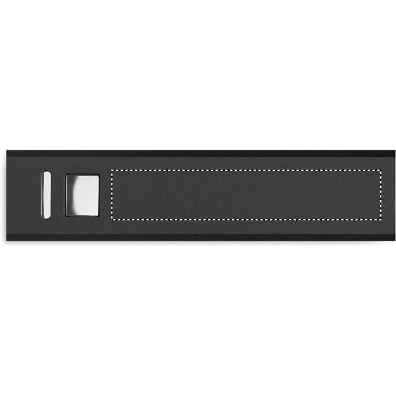Powerbank de 2600 mAh en carcasa de aluminio reciclado. Capacidad para uso de smartphone, corriente de salida DC5V/1A. Incluye cable de carga USB Tipo-C con adaptador Tipo-A. Entrada/Salida: USB Tipo-C.