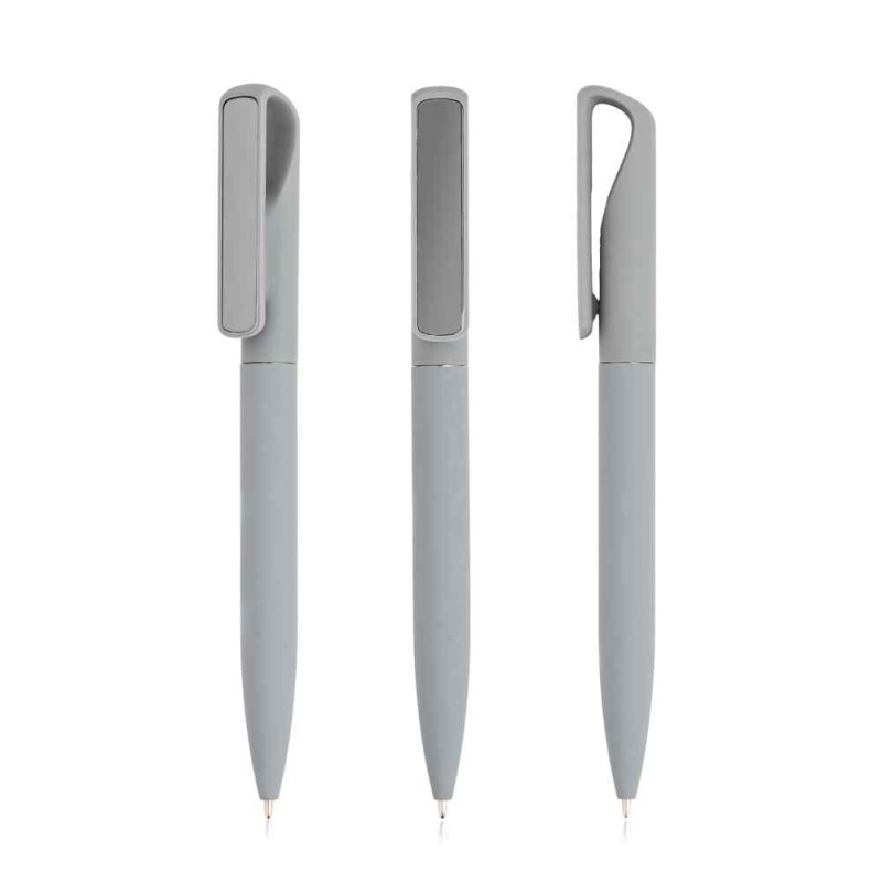 Bolígrafo elegante con acabado de material gomoso para un agarre suave y cómodo. Incluye un clip metálico con efecto espejo que aporta un toque sofisticado. Escritura en tinta negra, ideal para el uso diario en el trabajo, la escuela o eventos. Combina estilo y funcionalidad.
