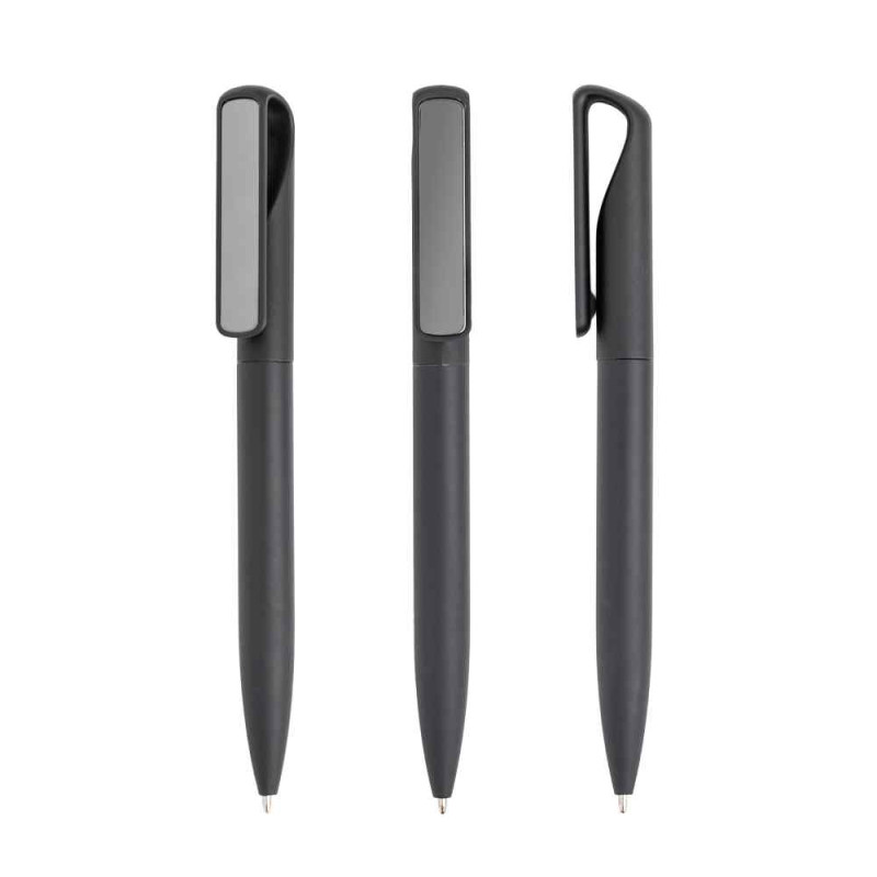 Bolígrafo elegante con acabado de material gomoso para un agarre suave y cómodo. Incluye un clip metálico con efecto espejo que aporta un toque sofisticado. Escritura en tinta negra, ideal para el uso diario en el trabajo, la escuela o eventos. Combina estilo y funcionalidad.