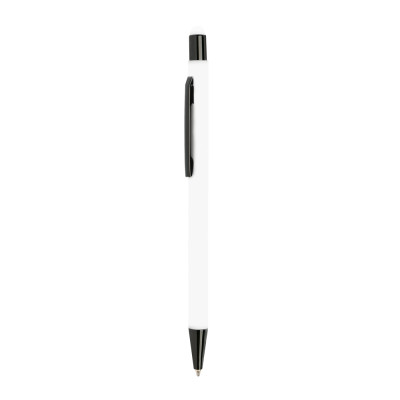 Bolígrafo en aluminio, cuerpo con tacto de caucho, sistema de pulsar. Bolígrafo de cuerpo delgado con un toque delicado. Tiene puntera táctil de color de la carrocería y detalles en negro. Personalice y vea cómo el reconocimiento de su marca pasa de mano en mano.