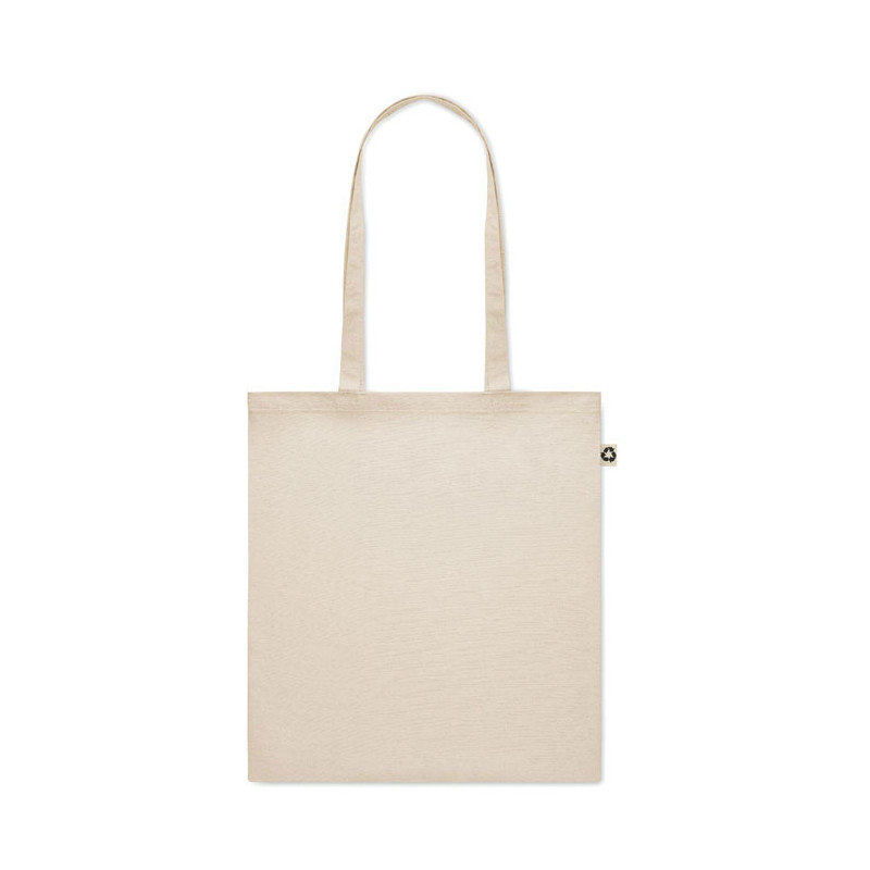 Bolsa de la compra de algodón reciclado pre-consumo (65% algodónreciclado, 35% algodón normal) con asas largas. 140 gr/m².