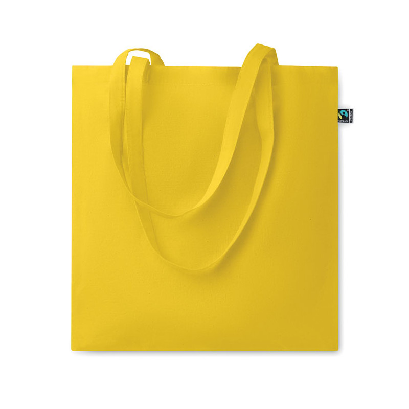 Bolsa de la compra de algodón de comercio justo teñido con asas largas. 140gr/m².