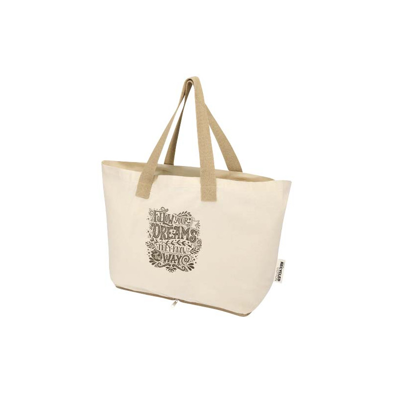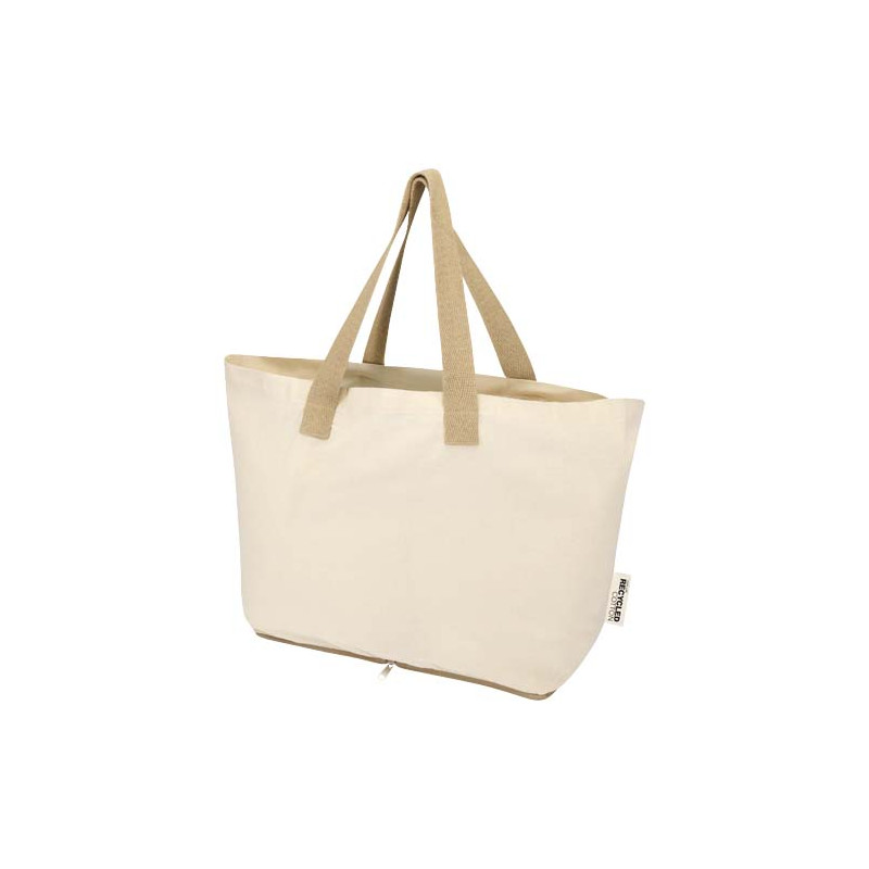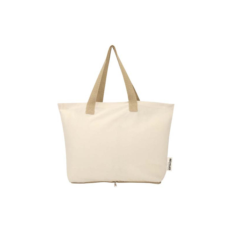 Ligera y práctica, la bolsa Tote plegable "Sierra" está fabricada en algodón 100 % reciclado con certificado GRS de 140 g/m², lo que ofrece un equilibrio entre flexibilidad y durabilidad. Se pliega perfectamente en su propia bolsa con cremallera en la parte inferior, por lo que es compacta y fácil de llevar. Ideal para ir de compras, hacer recados o viajar, la bolsa tiene una capacidad de hasta 10 kg y dispone de asas dobles para mayor sujeción y comodidad al transportar cargas más pesadas. Capacidad: 7 litros.