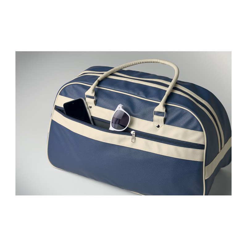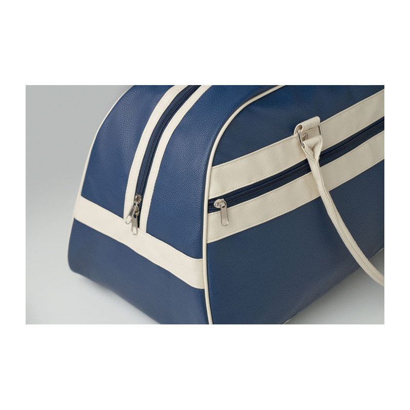 Bolsas de deporte o viaje personalizadas en PU con forro interior, bolsillo con cremallera y asas robustas. Artículos publicitarios, funcionales y personalizados.