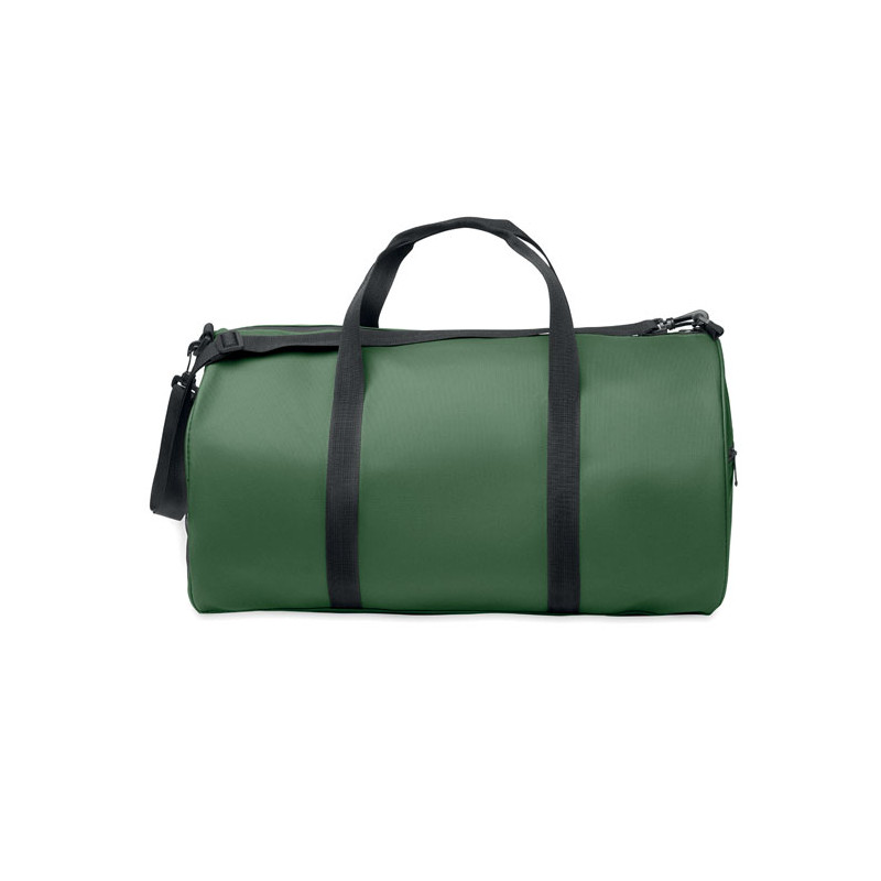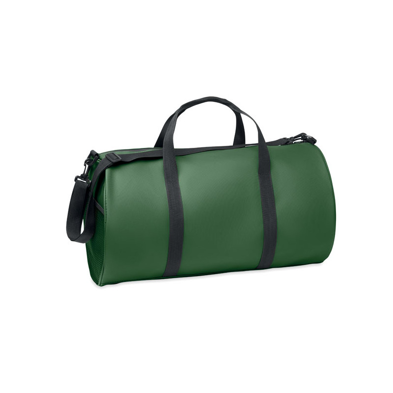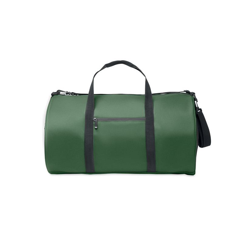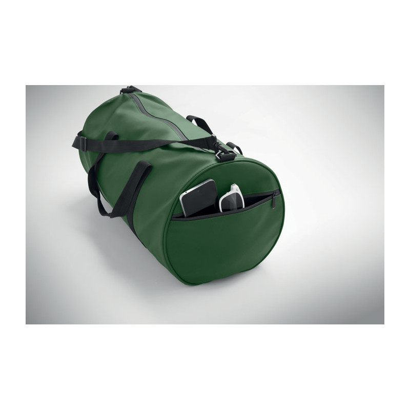 Bolsa de viaje de poliéster RPET 600D con revestimiento de PU. Bolsillo frontal con cremallera. Forro interior de poliéster RPET 210D. 1 compartimento lateral con cremallera / 1 compartimento lateral de malla. Bolsillo interior con cremallera.