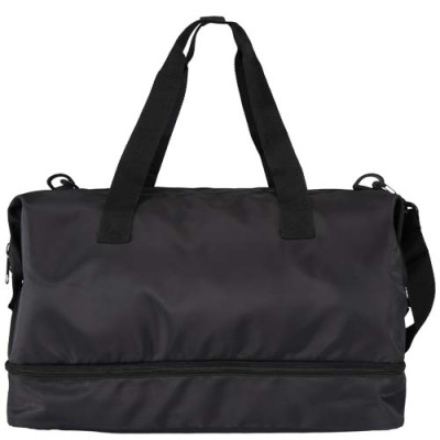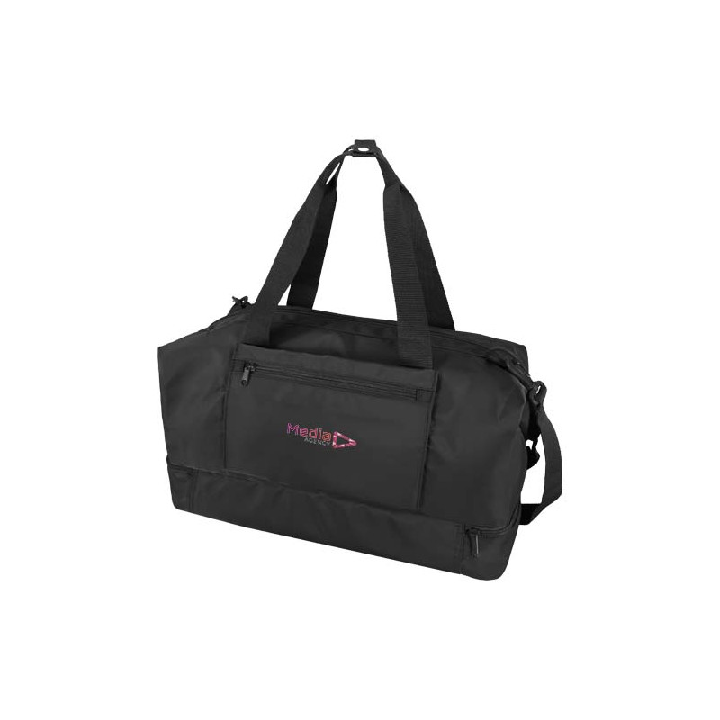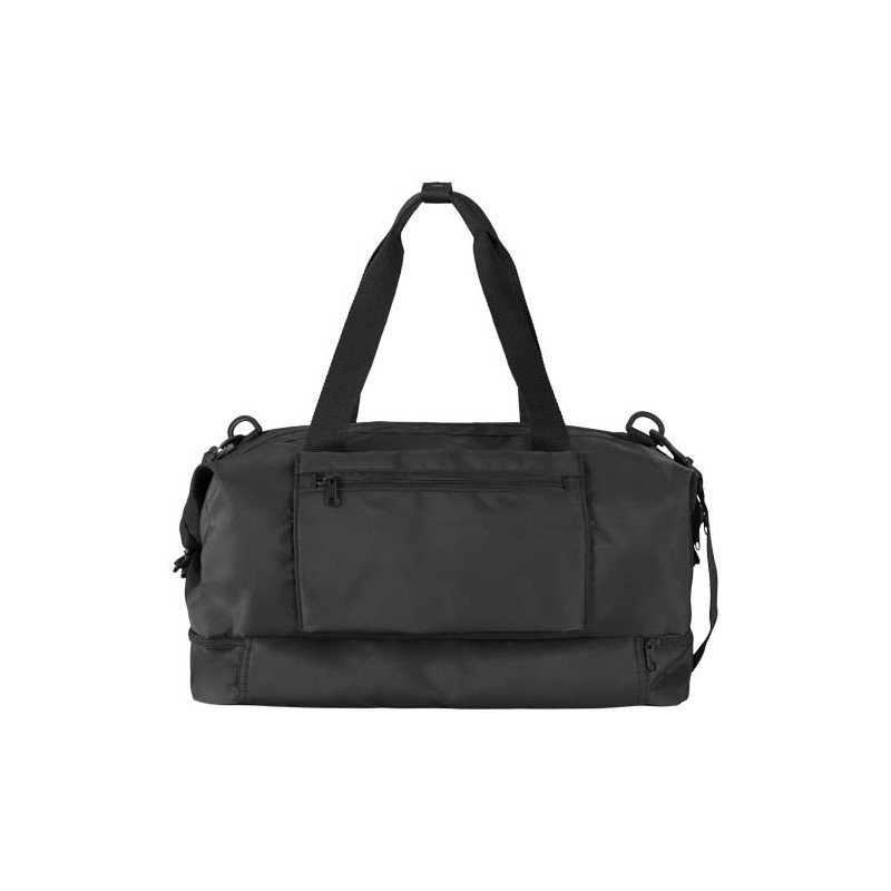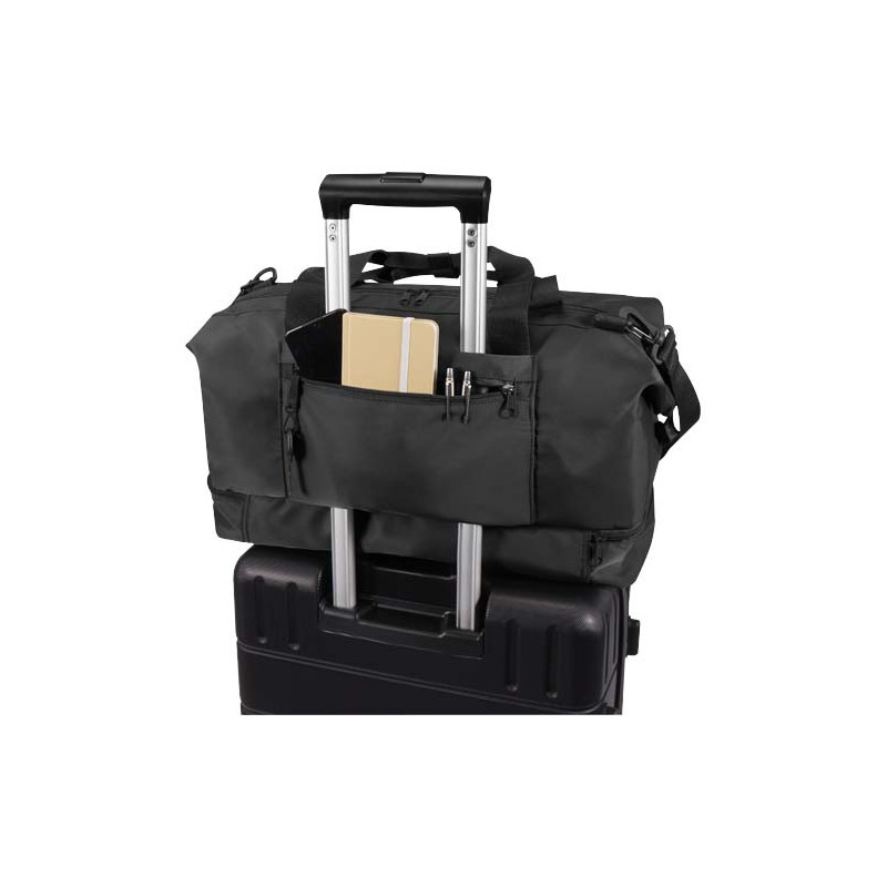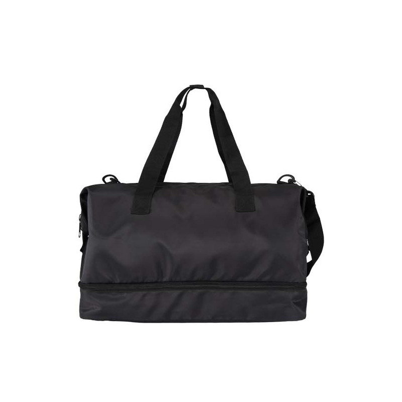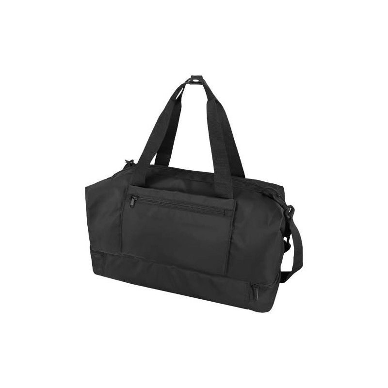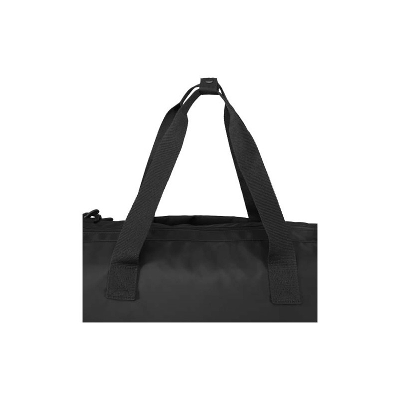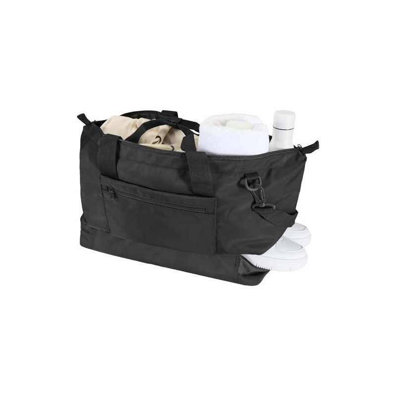 La bolsa de lona "Trip Aware™" reciclada de viaje es versátil y espaciosa, ideal para escapadas cortas y para llevar todos tus imprescindibles con facilidad. Fabricada en resistente poliéster de sarga 290D con un suave forro de punto y forrada con RPET 210D/poliuretano, está diseñada para un uso práctico y cómodo. El compartimento principal incluye un gran bolsillo con cremallera con espacio para el pasaporte, bolígrafos y una cinta para las llaves, además de dos bolsillos interiores y dos portabotellas. Un compartimento inferior independiente se abre en forma de almeja, perfecto para guardar el calzado o separar el equipo. Todas las bolsas tienen su propio rastreador "Aware™". Esta innovadora función permite a los usuarios rastrear el origen y el recorrido de su artículo a través de un código QR, lo que aumenta la transparencia de la cadena de suministro y fomenta una mayor conexión entre el producto y su proceso de producción. Capacidad: 42 litros.