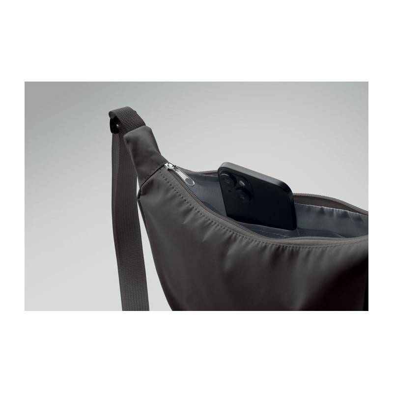 Bolsa bandolera en forma de medialuna o cruzada de Oxford 400D y forro de RPET 210D. Un bolsillo principal con cremallera y 2 bolsillos interiores.
