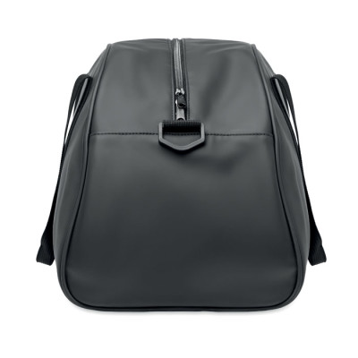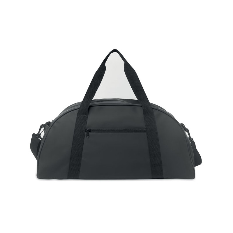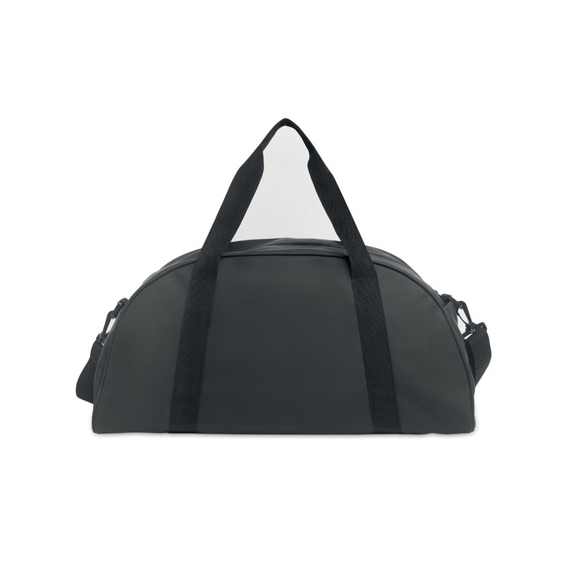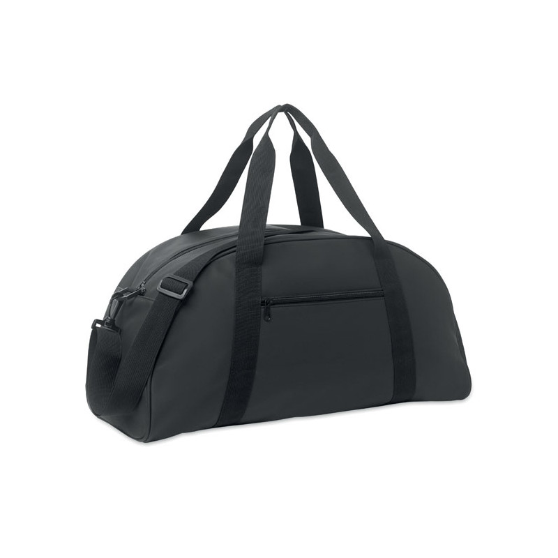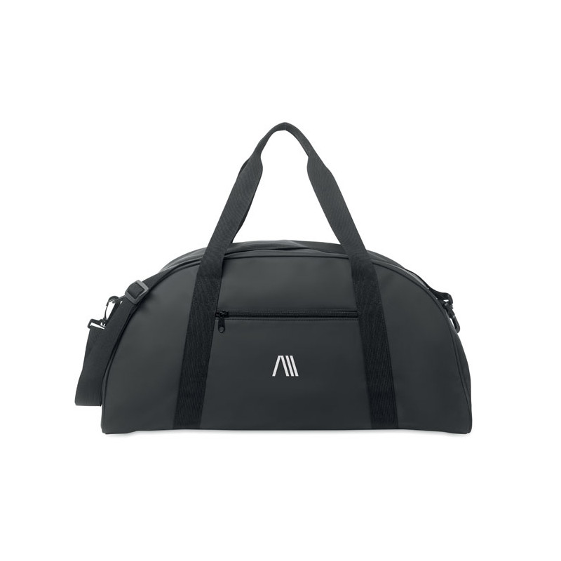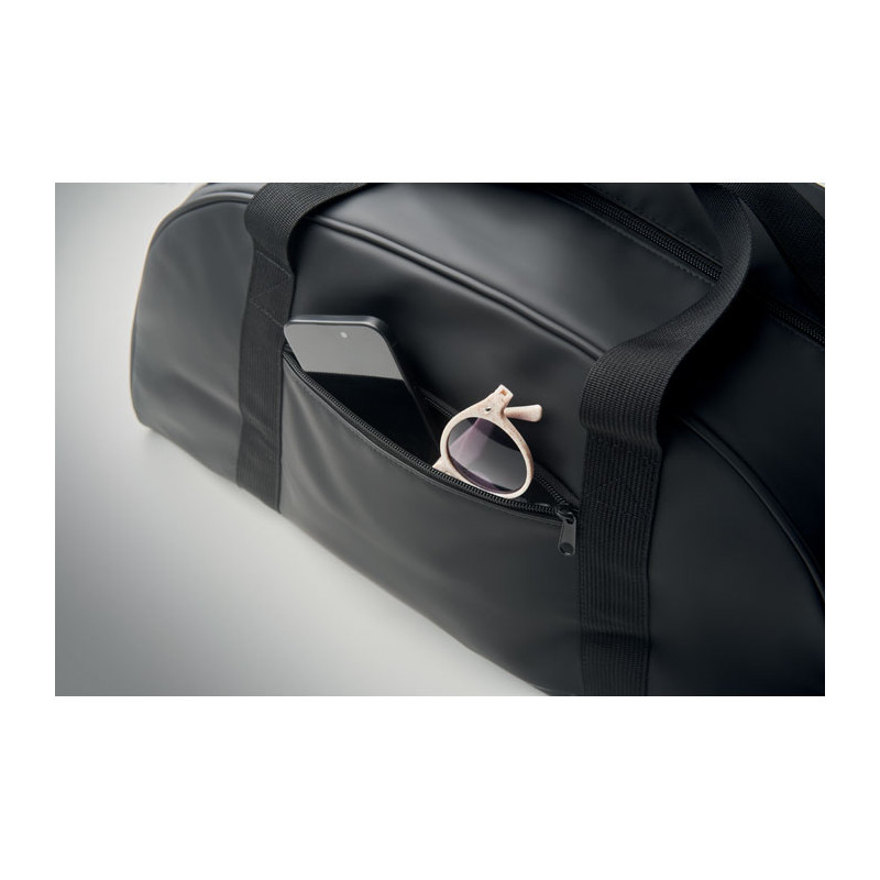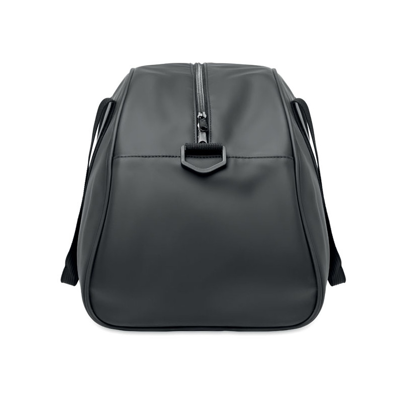 Bolsa de viaje de PU suave con refuerzo inferior de espuma. Un compartimento principal, bolsillo frontal con cremallera y bolsillo interior con cremallera. Forro de poliéster RPET 210D. 2 asas y una bandolera ajustable y desmontable