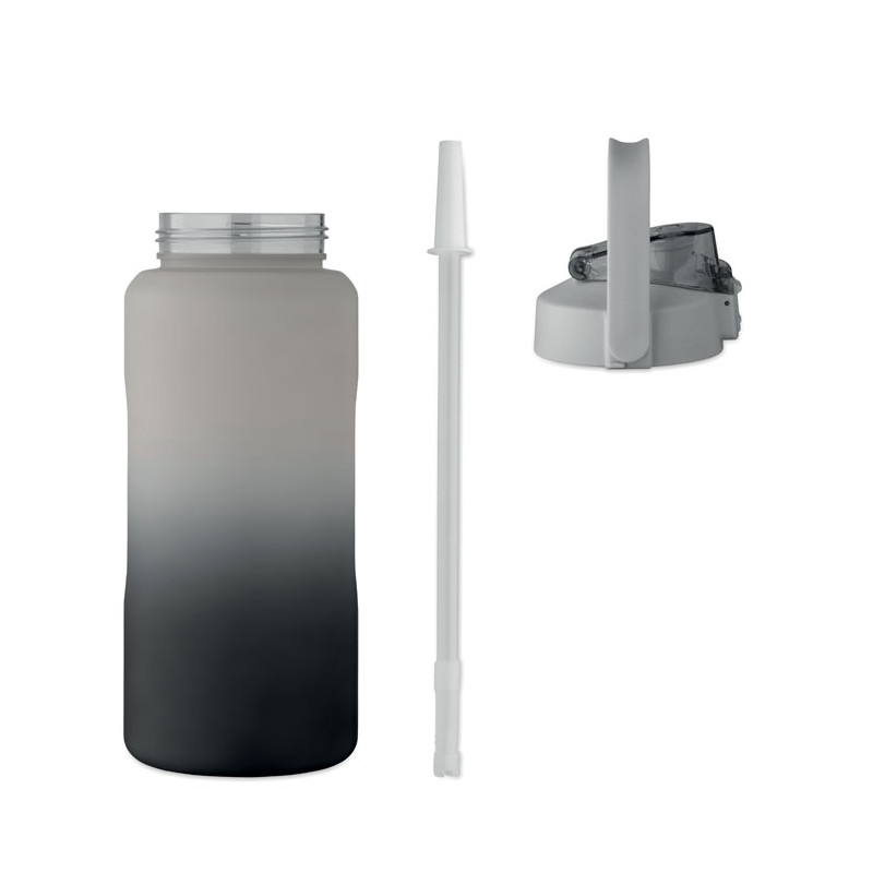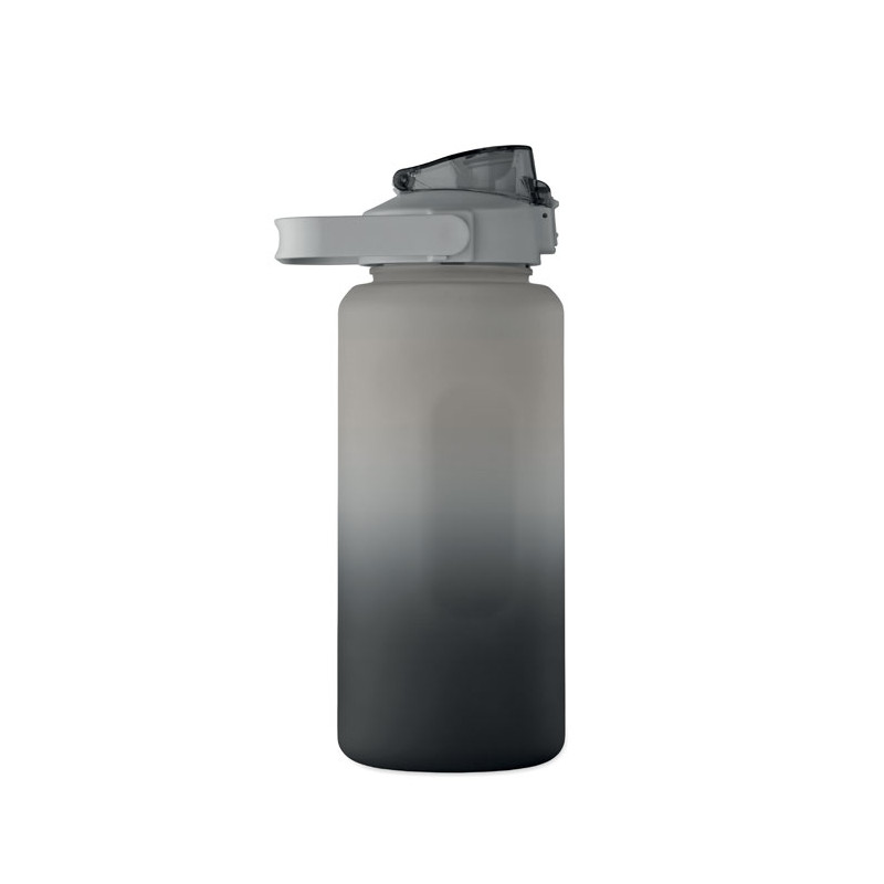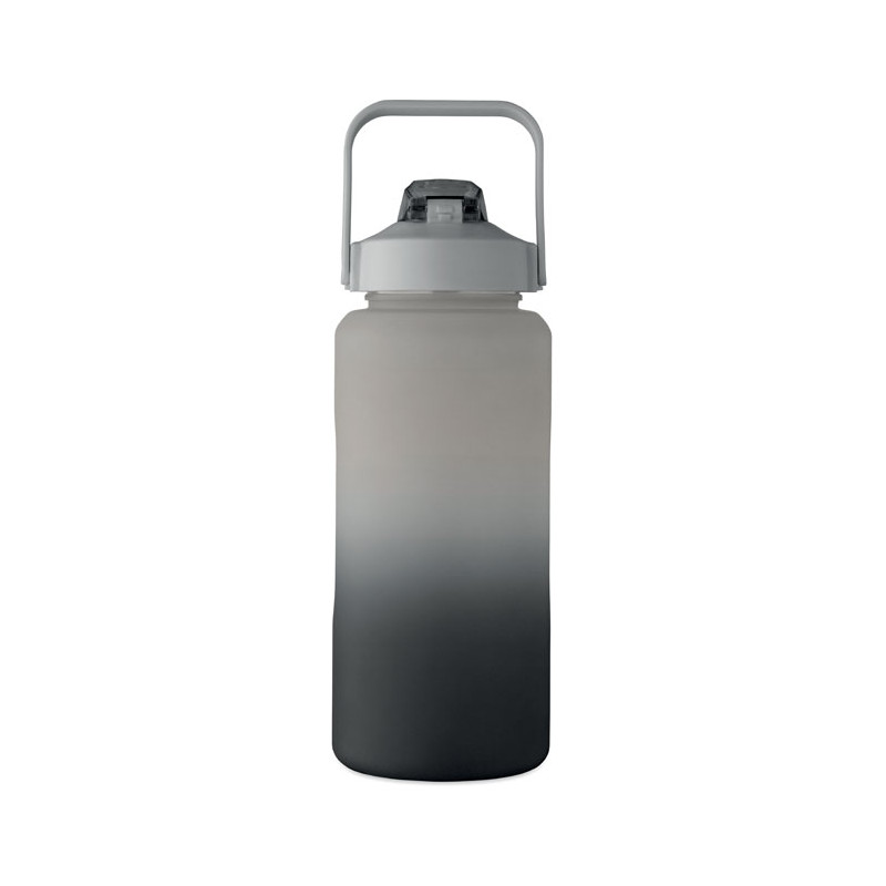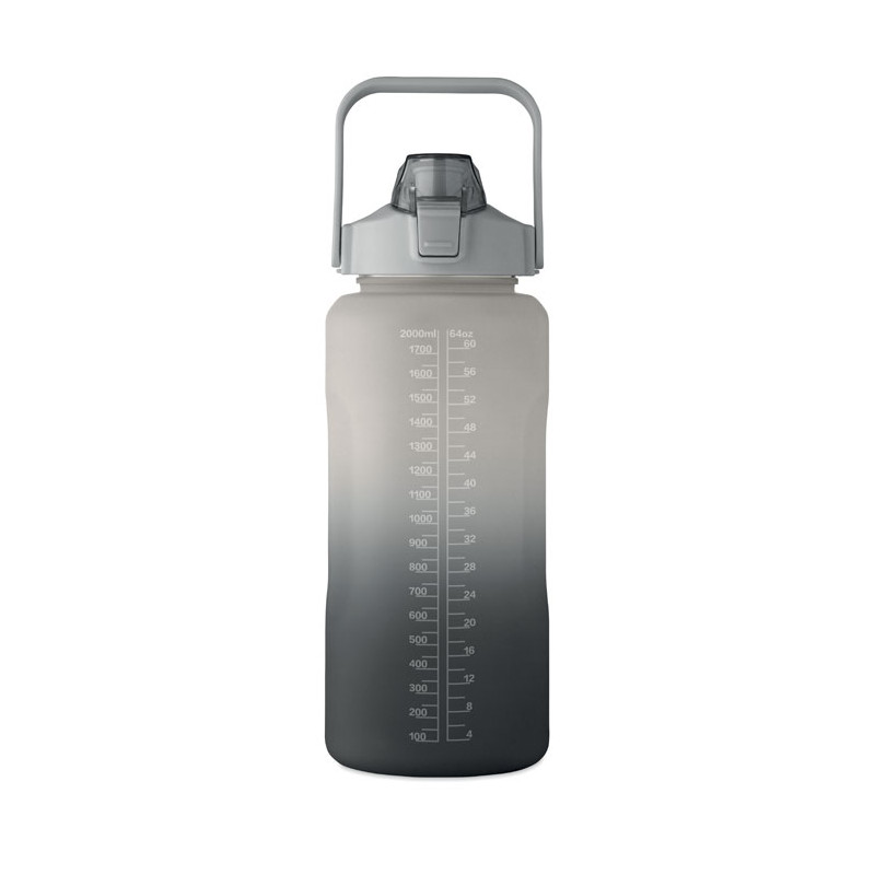 Botella de agua motivacional en RPET. Con tapa abatible que se abre con una sola mano, pajita, cierre de seguridad y asa. Anti fugas. Capacidad : 2000 ml