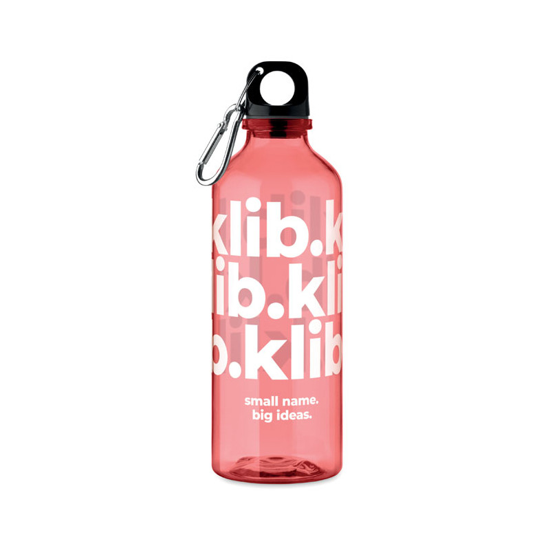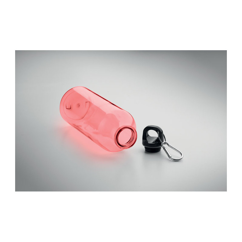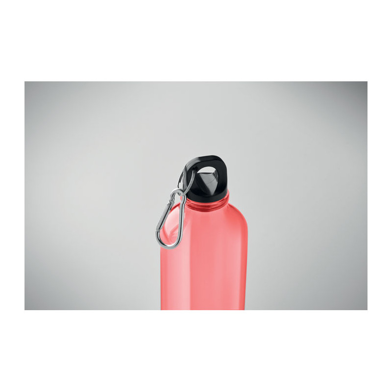 Botella traslúcida de RPET con mosquetón. Capacidad: 500 ml.