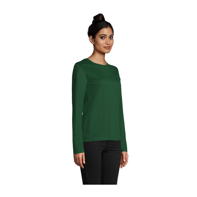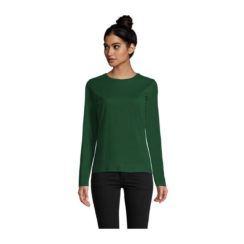 Camiseta para mujer SOL'S IMPERIAL de 190 g. Cuello redondo con elastano. Manga larga. Cortada y cosida. Corte entallado. Cinta en el interior del cuello. Detalles de la tela: 100% algodón semipeinado "Ringspun". OEKO-TEX®. Solo se vende con impresión.