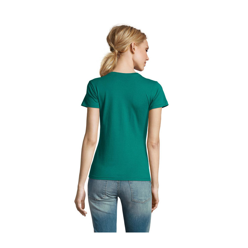 SOL'S IMPERIAL Camiseta para MUJER 190g/m². La Imperial para mujer se ha convertido en la camiseta de referencia de 190 gr/m², gracias a sus acabados, su calidad, sus 25 colores y sus 12 tallas. 100% algodón semipeinado de hilado en anillos, cinta reforzada en el cuello, cuello con acabado de canalé, mangas cortas, costuras laterales
