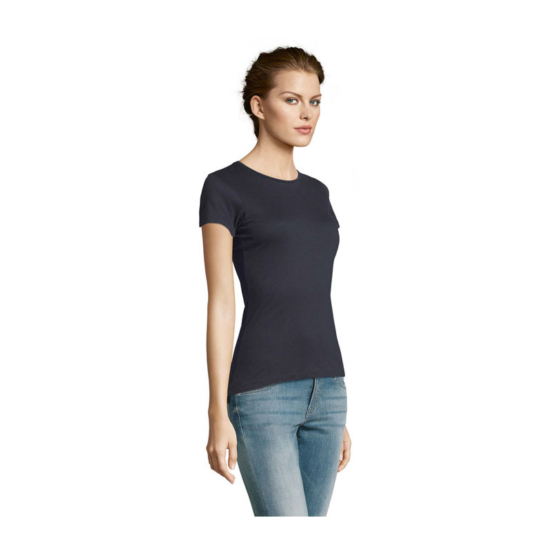 SOL'S MISS Camiseta Mujer 150g/m². Su acabado, su cuello y su amplia gama de colores hacen que esta prenda se diferencie de la competencia, 100% algodón semi peinado ringspun, tapa costuras reforzada en el cuello, escote de punto liso, manga corta, corte entallado, cuello fino, costuras laterales. .