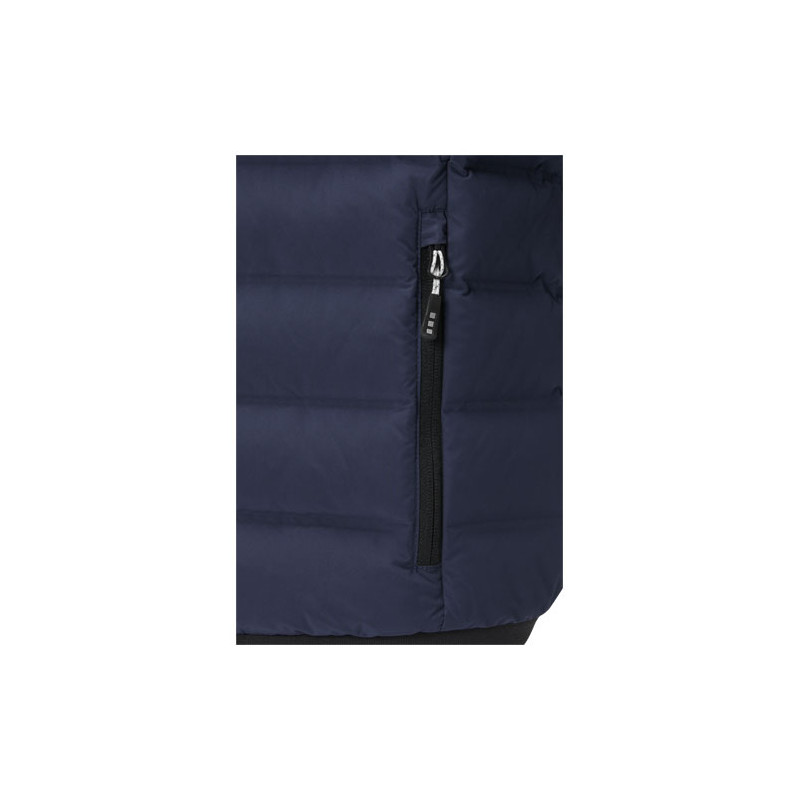 La chaqueta de plumón aislante Macin para hombre: una mezcla perfecta de estilo y calidez. Confeccionada en tejido pongee de doble capa 750T de 164 g/m² en poliéster. El tejido mate en combinación con el acolchado termosellado confiere a la chaqueta un aspecto moderno a la vez que mejora el aislamiento general. Aporta calidez sin comprometer los estándares éticos gracias al aislamiento de plumón reciclado con certificación RDS, compuesto de plumón reciclado y plumas recicladas. Con una solapa interior para tormentas, un protector de cuello y puños de canalé elástico de punto plano, esta chaqueta ofrece la máxima protección contra las inclemencias del tiempo. Los bolsillos delanteros con cierre de cremallera añaden comodidad y funcionalidad. Adopta tanto el estilo como los valores éticos con la chaqueta Macin, perfecta para cualquier aventura al aire libre o para llevar a diario.