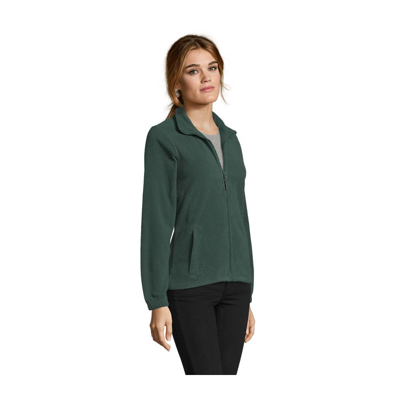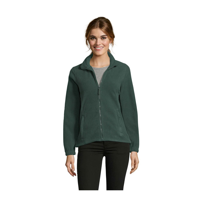 SOL'S NORTH WOMEN, CHAQUETA DE FLEECE CON CREMALLERA PARA MUJER, 100% poliéster de alta densidad FLEECE 300, Corte corto, Antipilling, Cinta de refuerzo en el cuello, Cuello alto forrado, 2 bolsillos con cremallera y solapa, Corte entallado, Puños elásticos, Canesú trasero de media luna, Cordón elástico en el bajo. Para la correspondencia de tallas, consulte la tabla de tallas en la sección de documentación del producto.