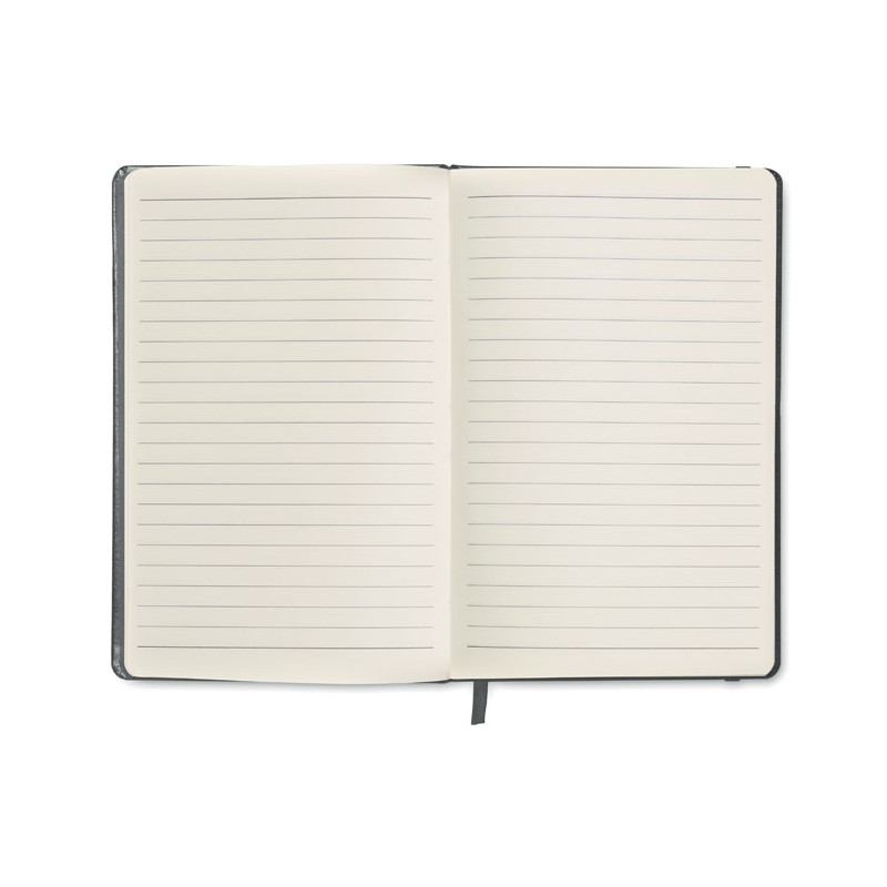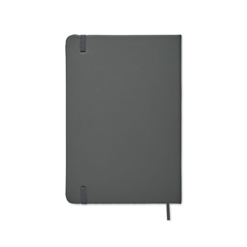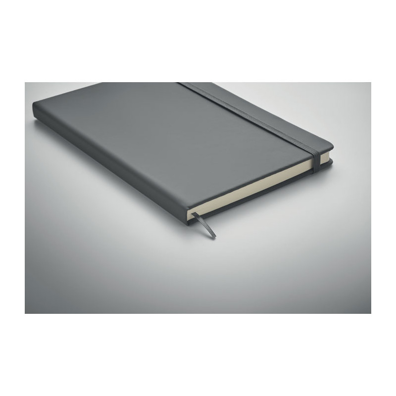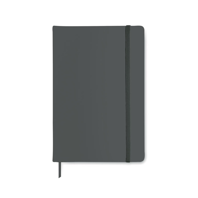 Cuaderno con una cubierta de tacto suave, acabado en PU y disponible en una amplia gama de colores. Cuenta con 96 hojas rayadas, una banda elástica y un marcador de páginas de tela a juego. Dispone de un amplio espacio para imprimir su logotipo o imagen. Dentro de la categoría de cuadernos, este es el más económico y también uno de los más vendidos.