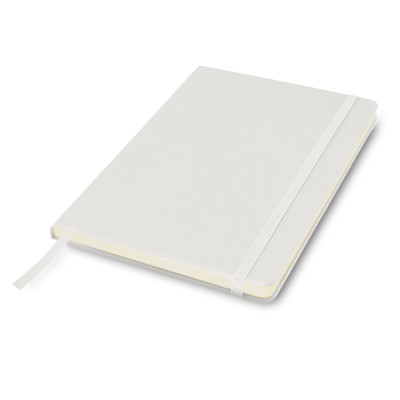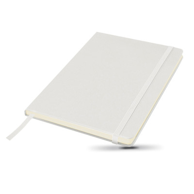 Bloc de notas A5, con tapa de cartón y estuche. Bloque con 80 hojas lisas de 70g. Funda de color, con elástico y cinta del mismo color. Ideal para personalizar. Únete a la belleza de la sencillez.