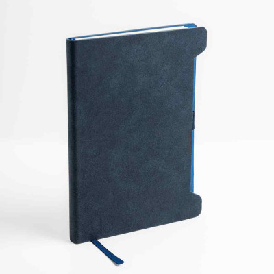Libreta A5 con cubierta de RPU suave y soporte para bolígrafo. El interior está compuesto por 96 hojas lisas de color marfil certificadas por el FSC, garantizando la sostenibilidad. La cubierta de esquinas redondeadas tiene una textura lisa y sofisticada, proporcionando una sensación agradable al tacto. El soporte lateral mantiene el bolígrafo protegido y siempre al alcance, ofreciendo practicidad y elegancia.