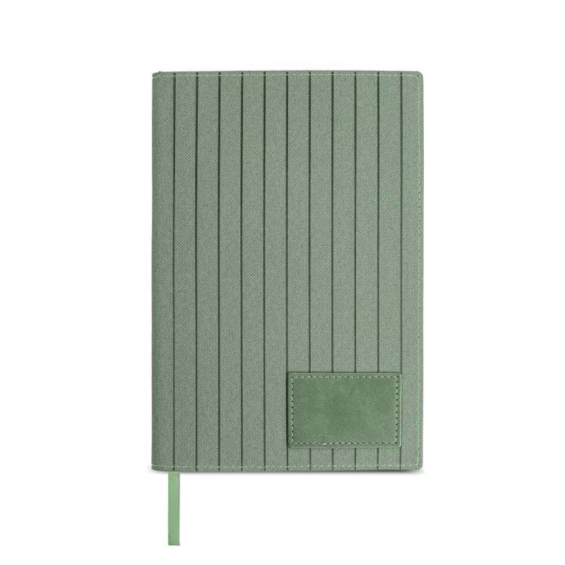 Libreta A5 Davda. Cubierta de PU, texturizada, con un parche especial para personalización. Hojas lisas, de papel procedente de bosques gestionados de forma responsable. Artículo empaquetado en una funda de cartón de color negro. Inspirado en el Set, esta libreta trae una paleta vibrante de nuevos colores y una cantidad optimizada de hojas