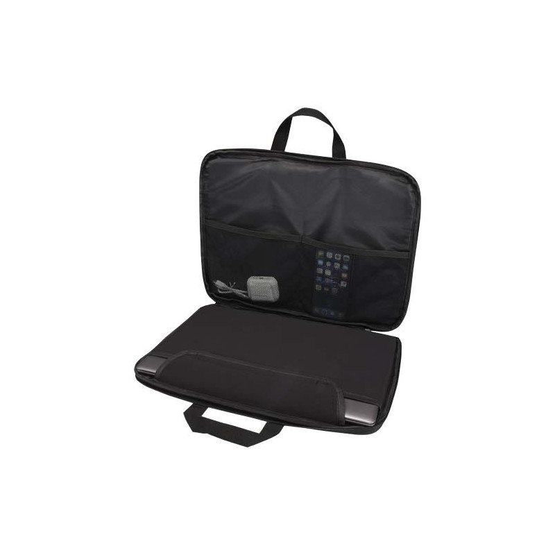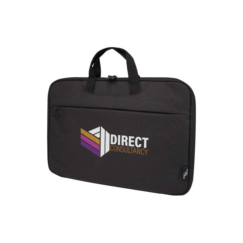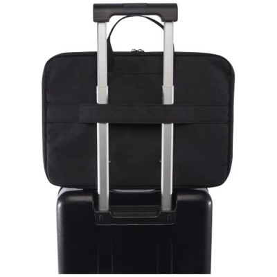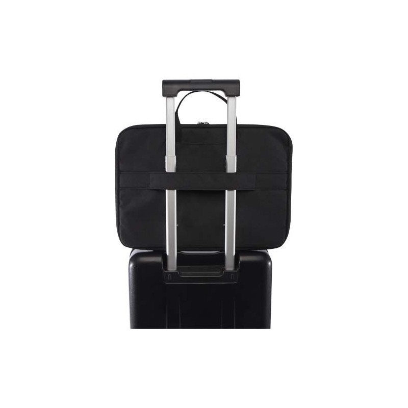 El maletín 2 en 1 para portátil de 14" "Libra" es perfecto para los desplazamientos diarios o los viajes gracias a sus funcionalidades y diseño bien pensados. Está fabricado con poliéster reciclado con certificado GRS y forro de RPET, y tiene un compartimento principal con cremallera que puede abrirse 180 grados para facilitar los controles de seguridad. El maletín también cuenta con una funda de neopreno de calidad para prooteger el portátil en un lado, dos bolsillos de malla en el otro, un bolsillo frontal con cremallera y una correa para trolley en la parte posterior. Además, dispone de dos bolsillos abiertos para almacenamiento adicional en los que también se pueden meter con facilidad las asas de correa, con lo que se convierte en una funda para portátil.