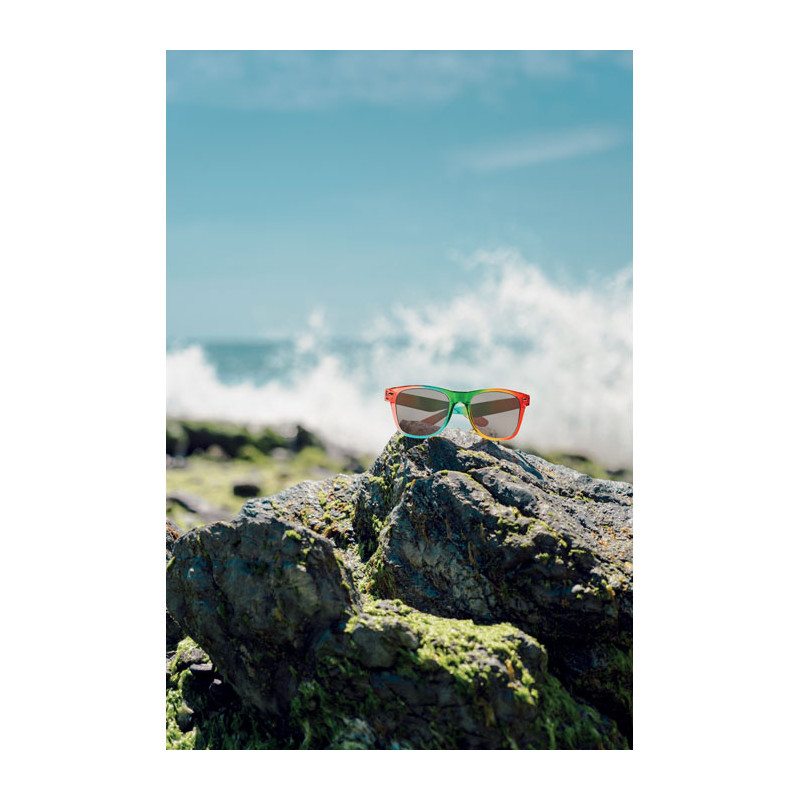 Gafas de sol multicolor Borea con montura de PC para regalos personalizados. Diseño Rainbow vibrante, ideal para festivales, eventos de verano y promociones de marca.