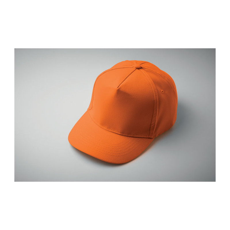 Gorra de béisbol 5 paneles en algodón. 160 gr/m² con cierre ajustable de velcro. 5ojales cosidos en color a juego. Talla 7 1/4.