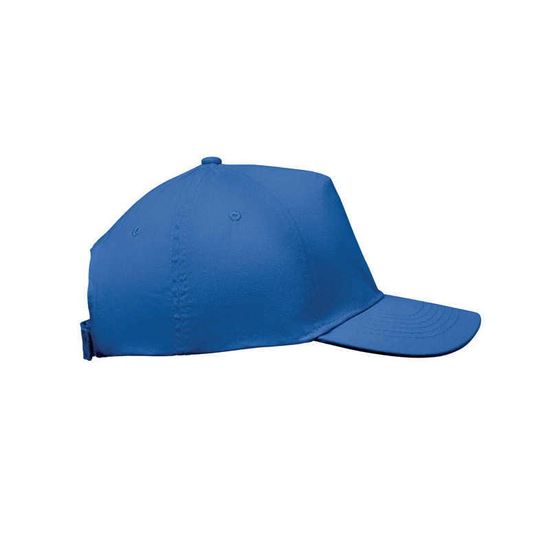 Gorra de béisbol 5 paneles en algodón. 160 gr/m² con cierre ajustable de velcro. 5ojales cosidos en color a juego. Talla 7 1/4.