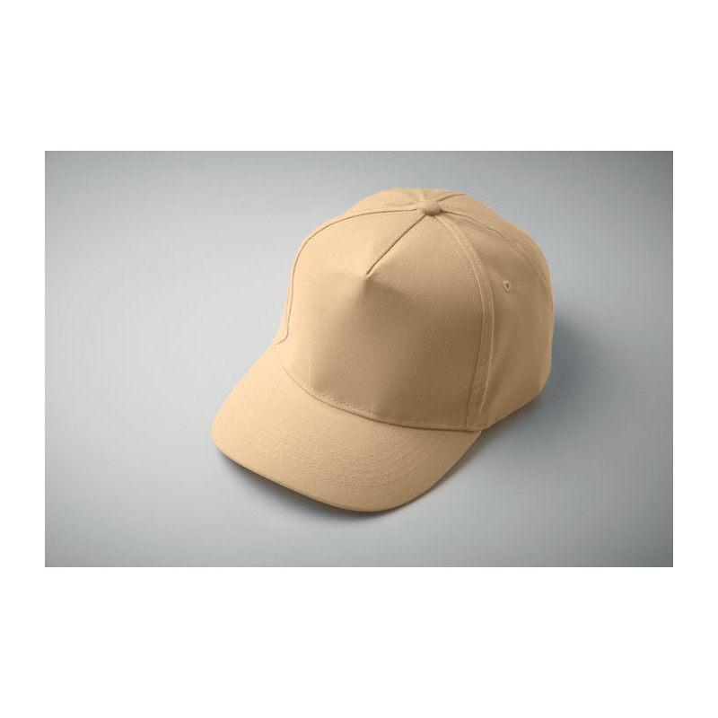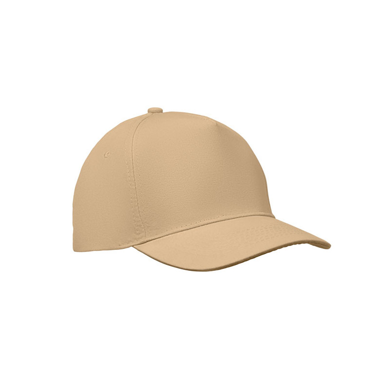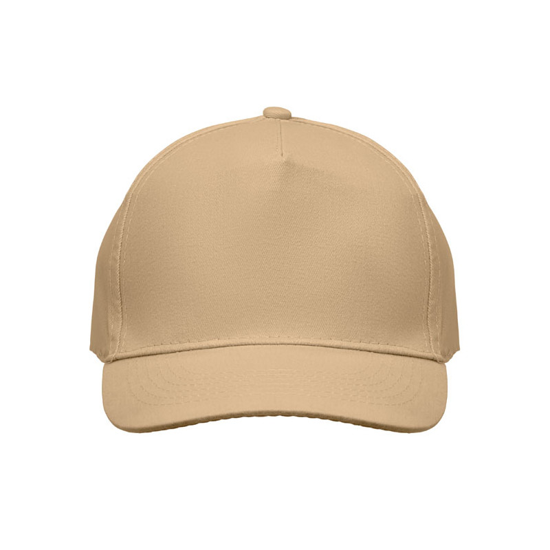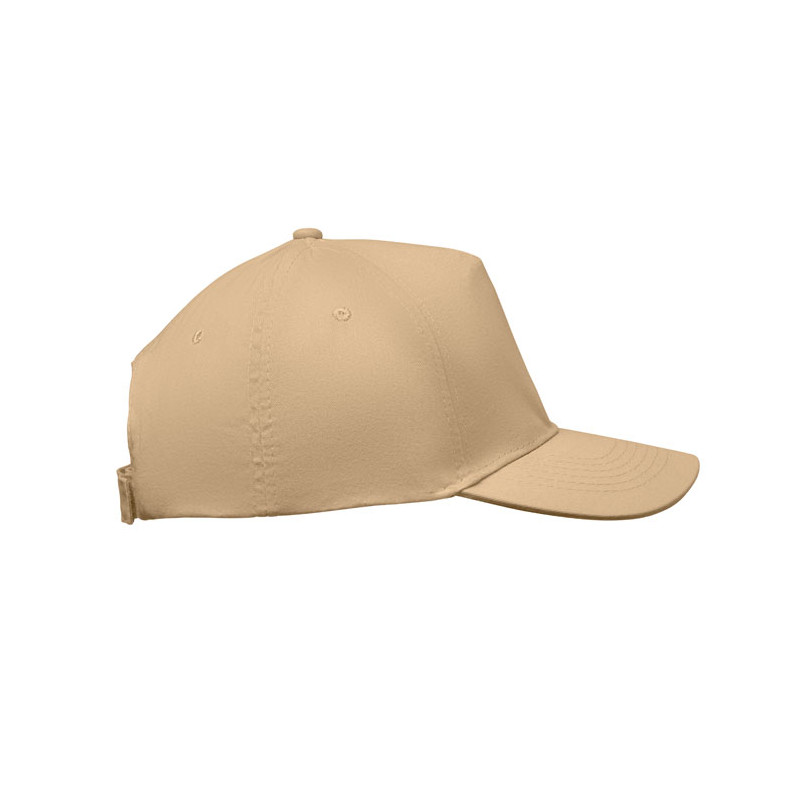 Gorra de béisbol 5 paneles en algodón. 160 gr/m² con cierre ajustable de velcro. 5ojales cosidos en color a juego. Talla 7 1/4.