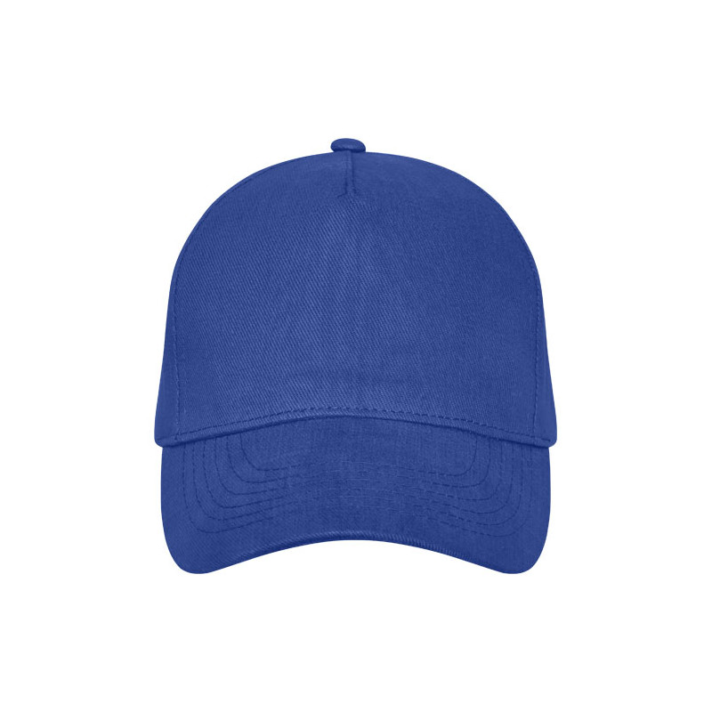 Gorra de 5 paneles en sarga de algodón cepillado con visera precurvada y ajuste fácil. Estética clásica y duradera para actividades al aire libre.
