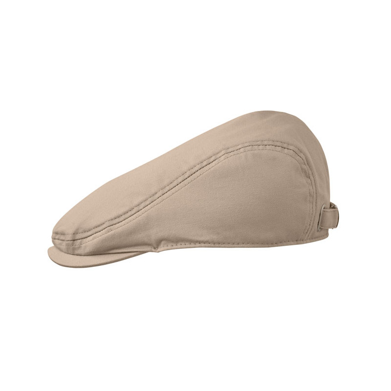 Gorra Newsboy estilo boina plana de sarga de algodón de 235 gr/m² con cierre de hebilla metálica.