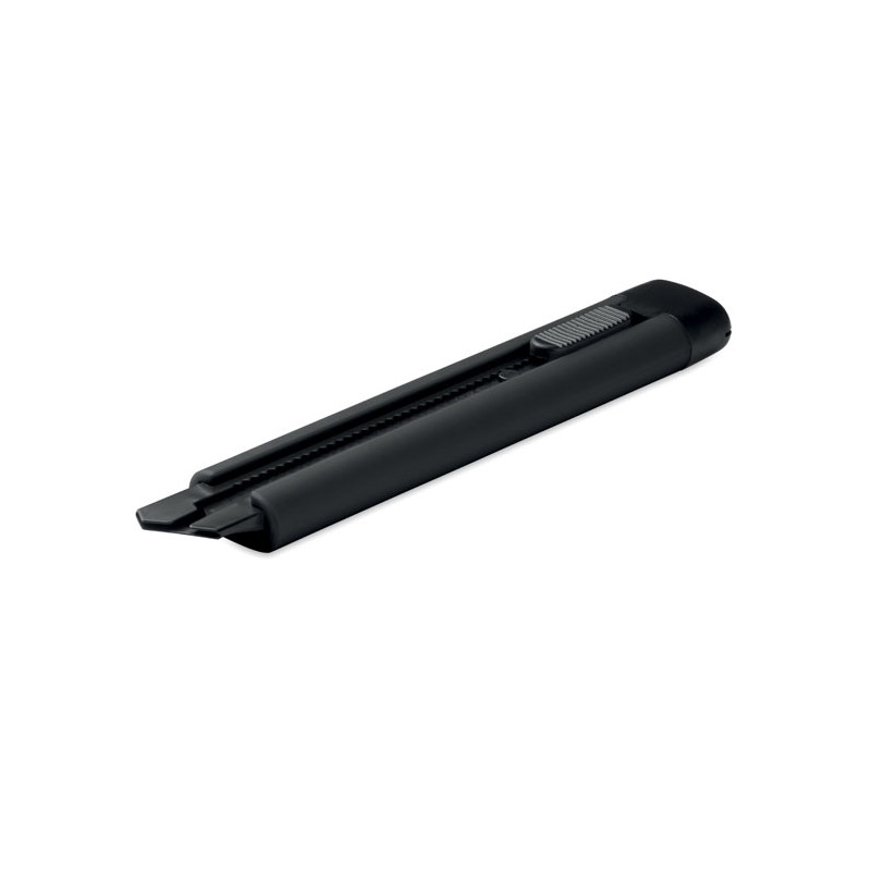 Cúter retráctil con carcasa de ABS y hoja de acero al carbono. Incluye dos cuchillas de repuesto adicionales para un uso prolongado.