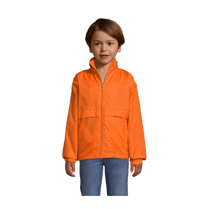SOL'S SURF Cortaviento Niño 210g/m². Impermeable, abertura con cremallera, capucha doblada en el cuello, 2 bolsillos exteriores cerrados con cremallera, sistema de plegado €œin bag€ con elásticos anudados en cintura, aberturas de ventilación, cordón interior asegurado en la base. Tallas - 5-6 años: 105-116cm (XL), 7-8 años: 117-128cm (XXL), 9-11 años: 129-141cm (3XL), 12-14 años: 142-164cm (4XL), 15-16 años: 165-176 cm (5XL)