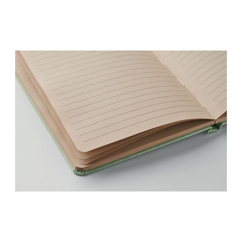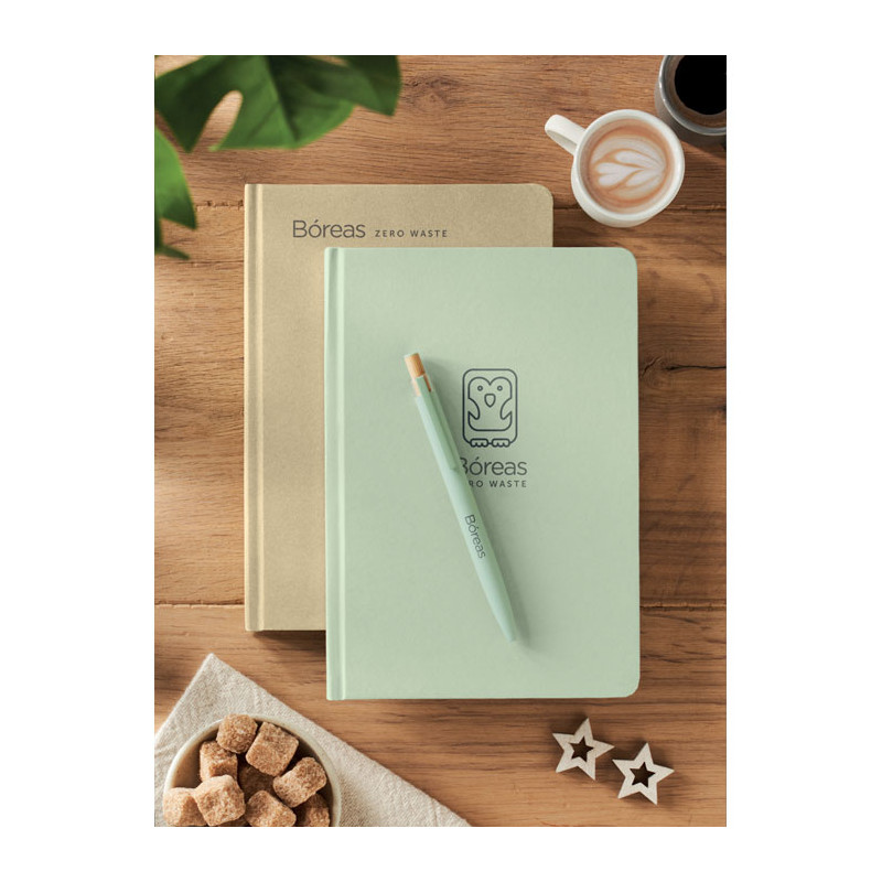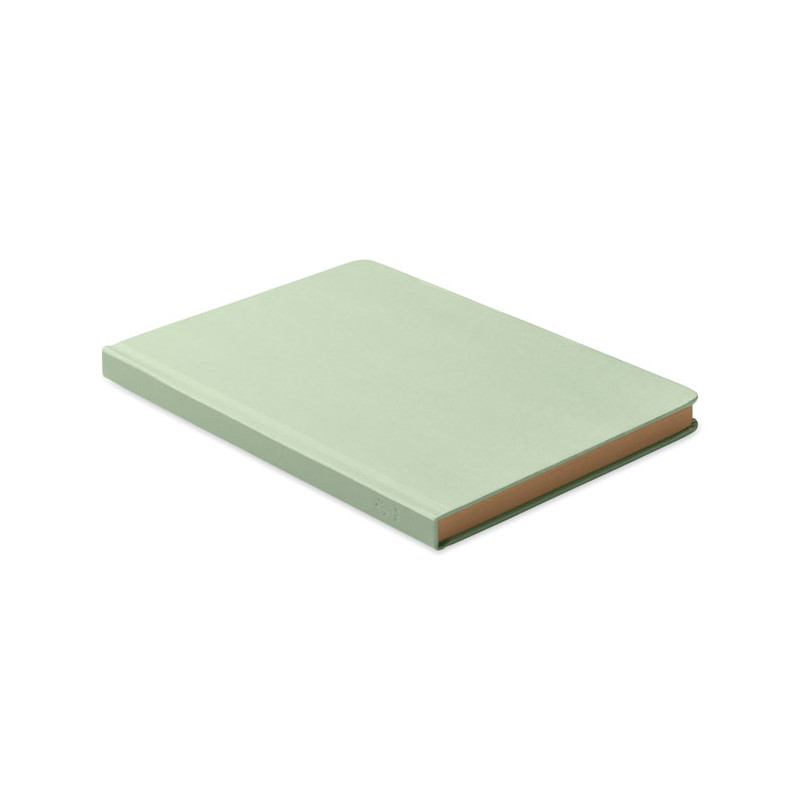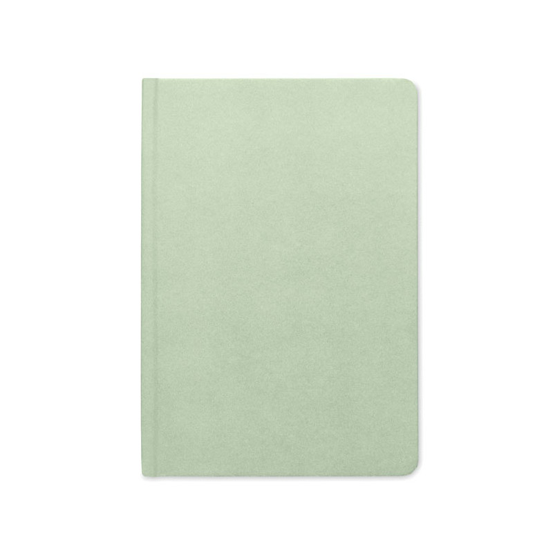 Libreta A5 con tapa dura y 160 páginas de papel rayado (80 hojas) en PLA de caña de azúcar (65% fibra de caña/35% papel).