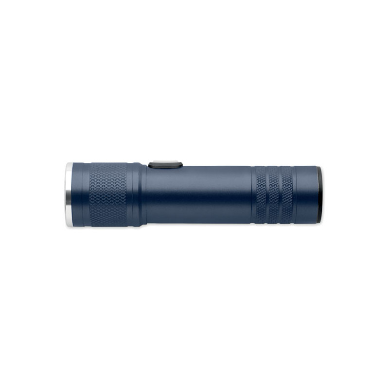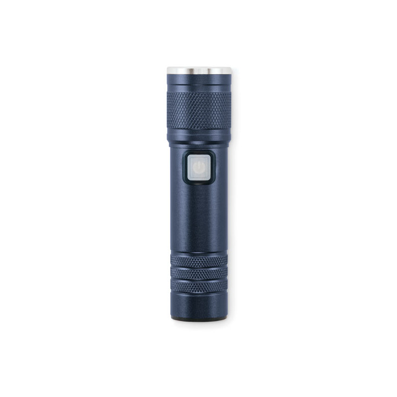 Linterna de luz COB recargable y extendible de aluminio reciclado. 100 lúmenes con 3 ajustes de luz y función de zoom. Batería recargable integrada de 800 mAh. Cable de carga incluido.