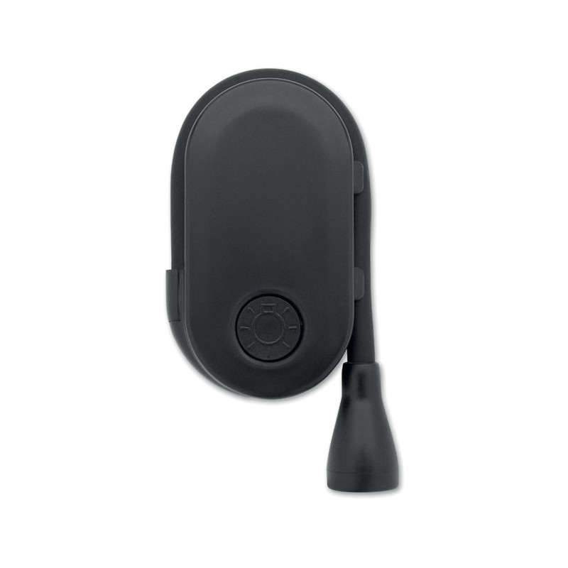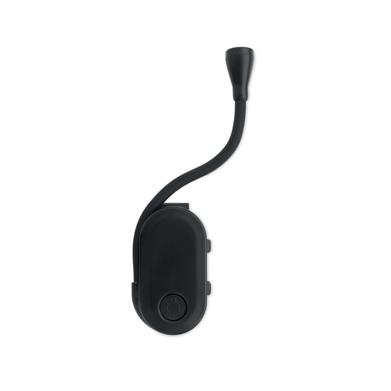 Luz de lectura LED recargable en ABS con cuerpo flexible y clip. Dispone de 3 ajustes de luz, batería de 300 mAh.