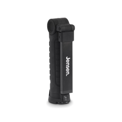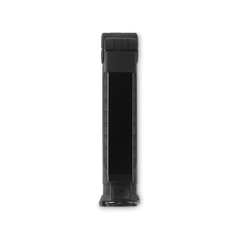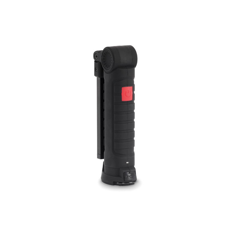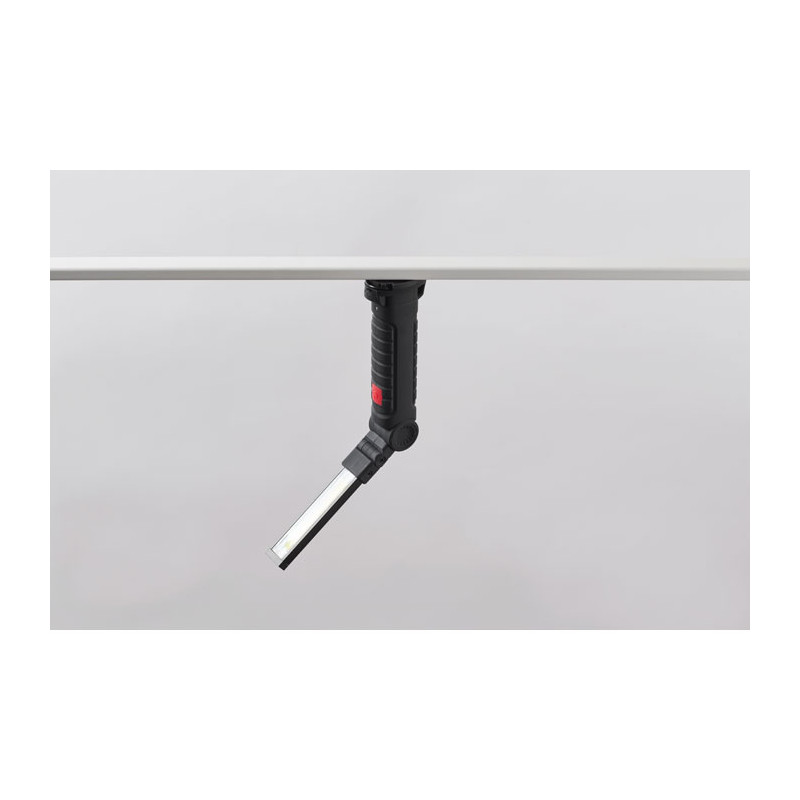 Luz de trabajo de aluminio recargable de 1200 mAh con cuerpo giratorio 270°. Dispone de luz de inspección brillante, luz COB lateral con 2 ajustes, gancho para colgar y base magnética. Cable incluido.