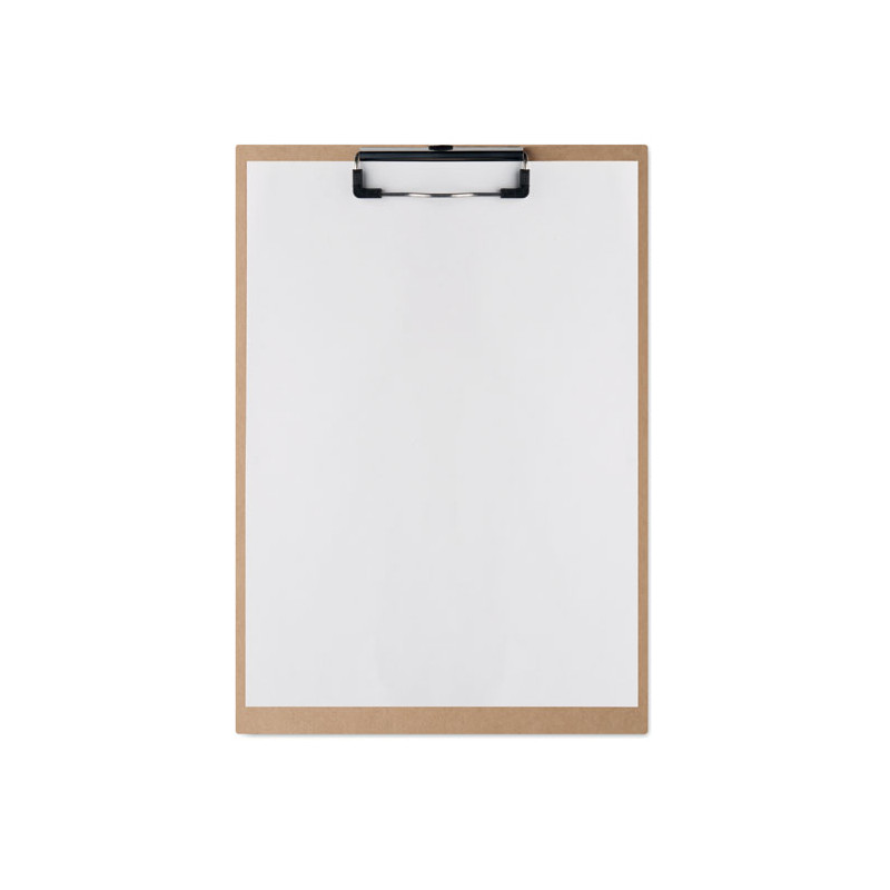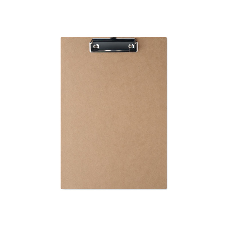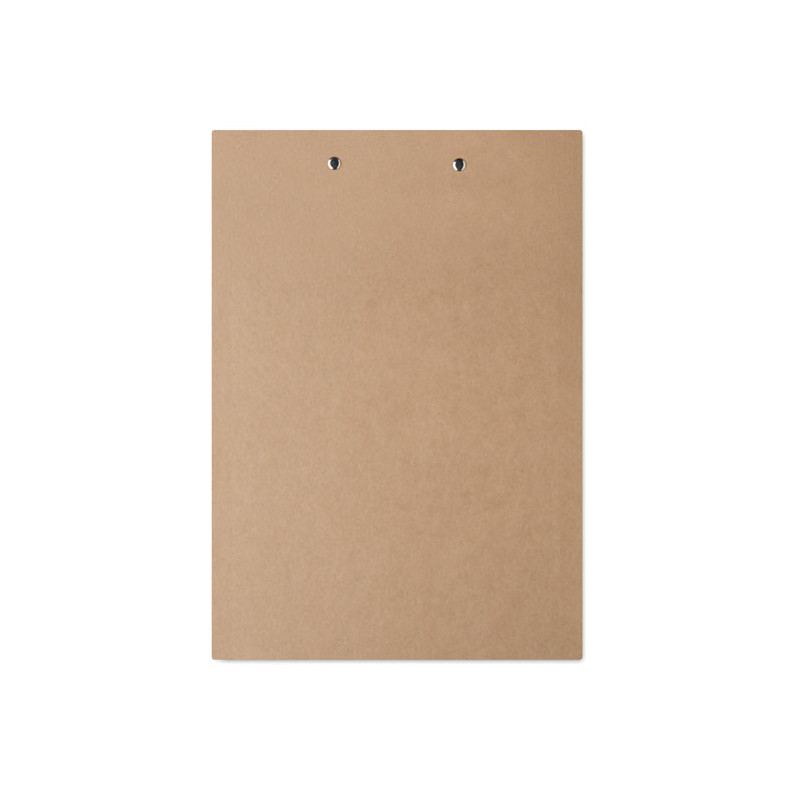 Portapapeles A4 de cartón con cubierta de papel y clip de hierro plateado. Diseño ligero de 125 g, ideal para el uso diario en la oficina o el colegio.