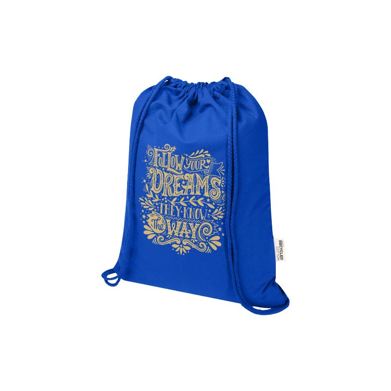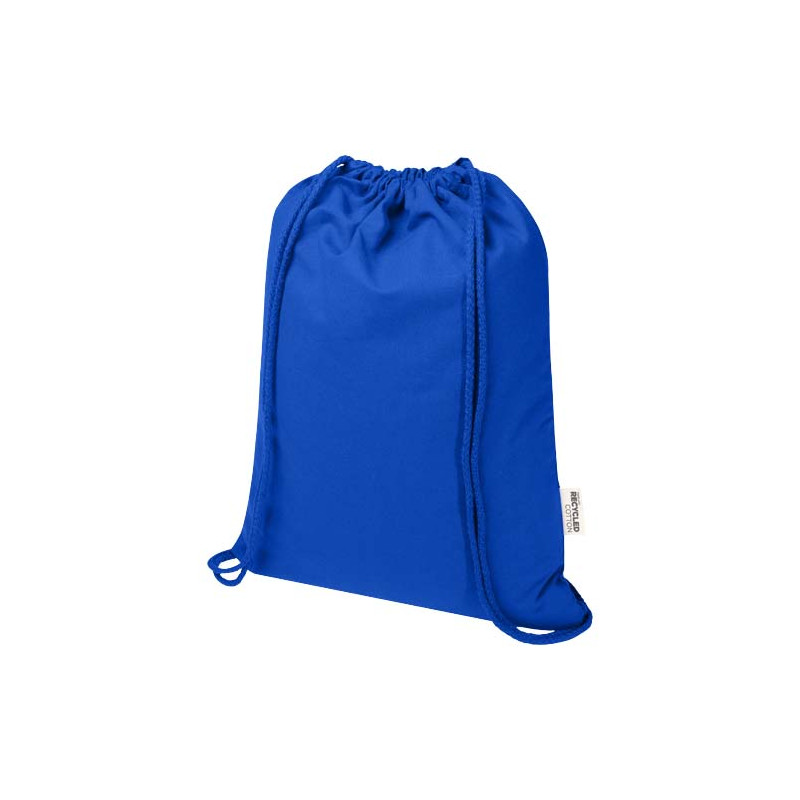 La bolsa con cordón fabricada en 60 % algodón reciclado con certificación GRS y 40 % PET "Oregon Blend" resulta ideal para potenciar tu marca o campaña de marketing. Esta bolsa ligera es económica y fácil de llevar a la espalda o al hombro, y dispone de espacio suficiente para añadir un logotipo u otros mensajes. El cordón facilita su apertura y cierre, y el material de algodón de 140 g/m² es resistente y duradero. Gran compartimento principal con cierre de cuerda de algodón. Los estampados disponibles para esta bolsa Tote también cuentan con la certificación GRS, lo que garantiza que toda la cadena de suministro es transparente y está certificada. Fabricada en la India. Resistencia para hasta 5 kg de peso. Capacidad: 5 litros.