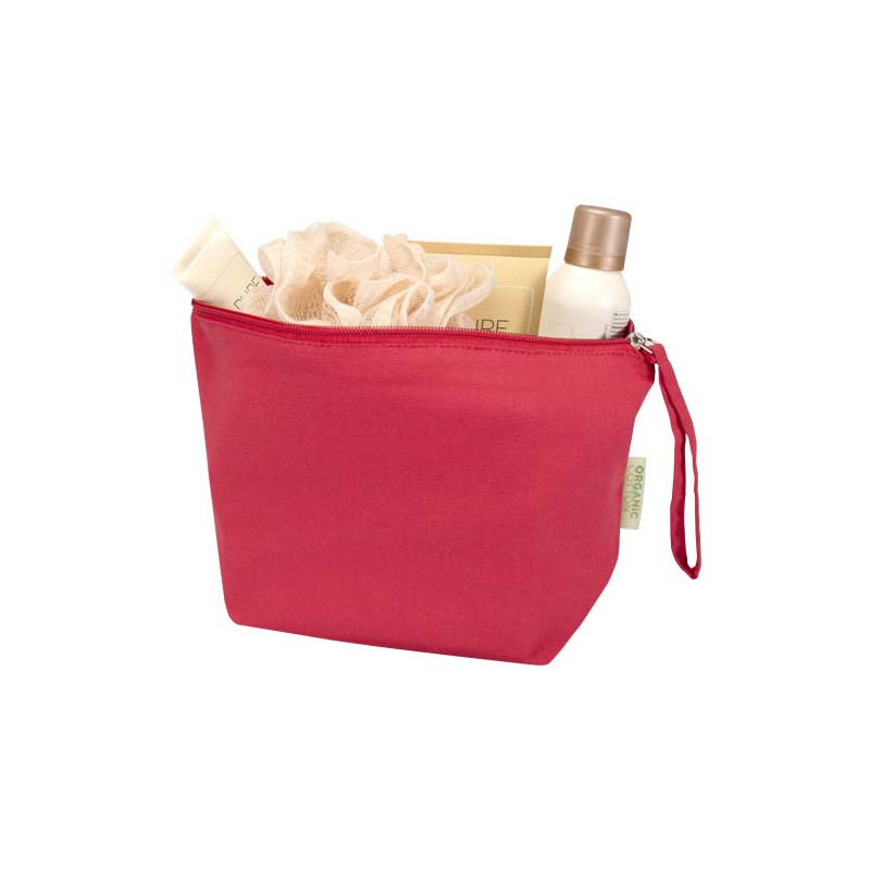 Neceser grande Odisha de algodón biológico con cremallera y asa lateral. La solución ética para crear regalos publicitarios con un toque natural y sofisticado.