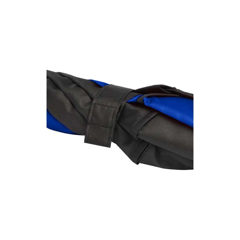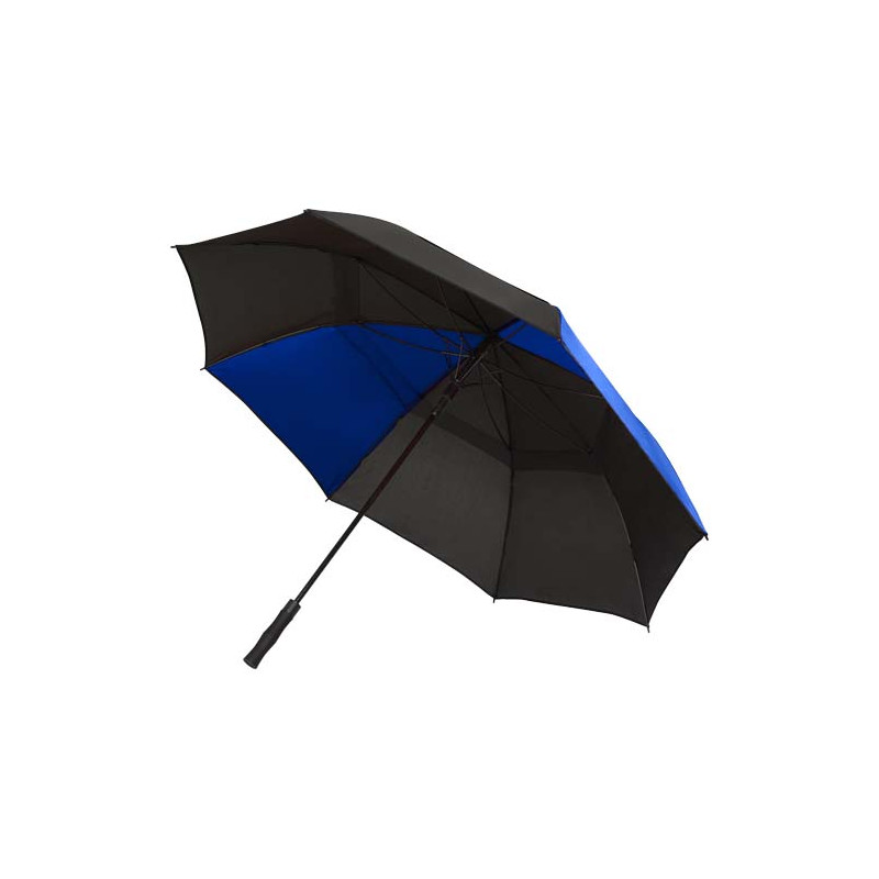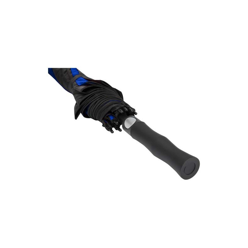 El paraguas "Jeff" cortaviento para golf está diseñado con una amplia cubierta de poliéster, que protege cómodamente a varias personas. El robusto eje y estructura de fibra de vidrio proporcionan una excelente flexibilidad y ofrecen una gran resistencia frente a vientos fuertes. Una práctica asa de plástico con botón de apertura automática garantiza un manejo rápido y sencillo. Los paneles en contraste ofrecen una oportunidad perfecta para colocar un logotipo llamativo y vistoso, ideal para eventos, promociones o para el uso diario.
